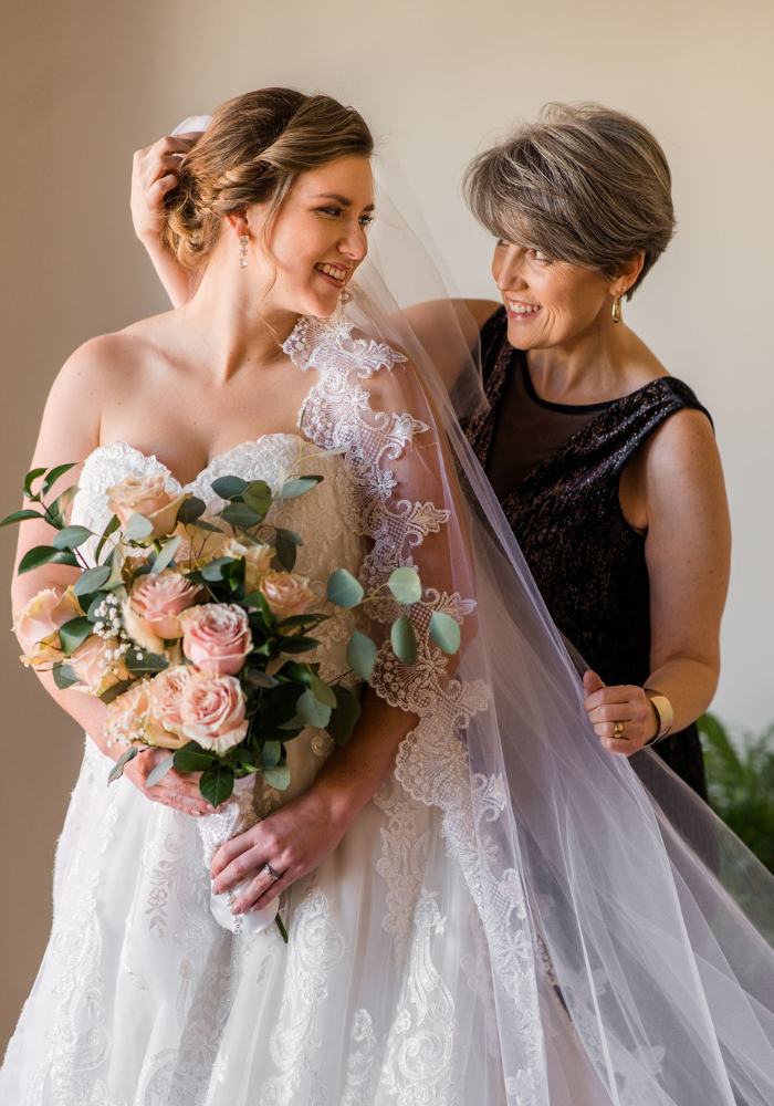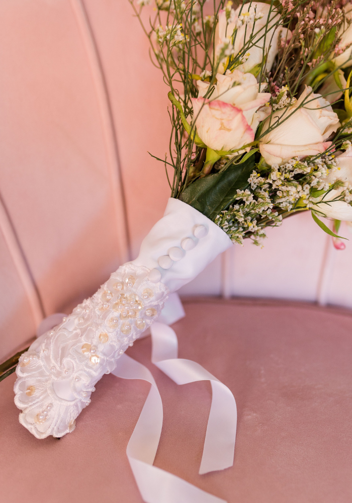 Carry a piece of Mom down the aisle with you, with a customized veil trimmed with the original lace from her dress. With customizable lengths and shades of tulle, brides can make sure the final design is the perfect finishing touch for their look. Not planning on wearing a veil? A bouquet wrap is a perfect way to add a sentimental touch to your bridal bouquet!