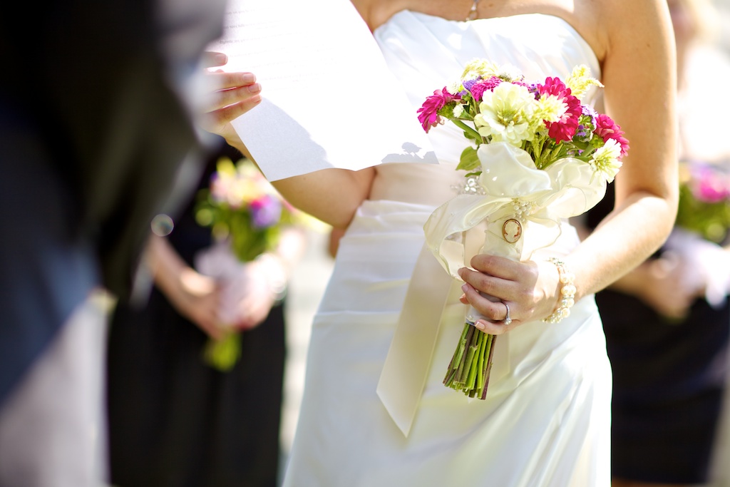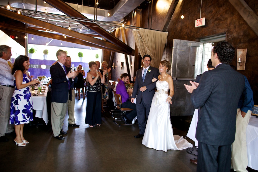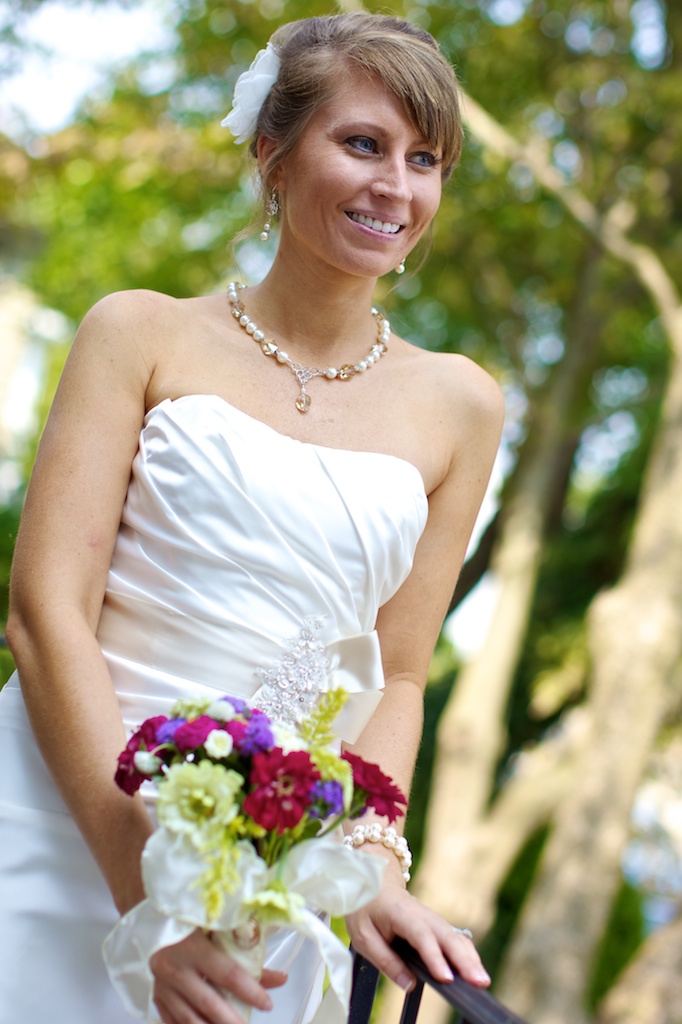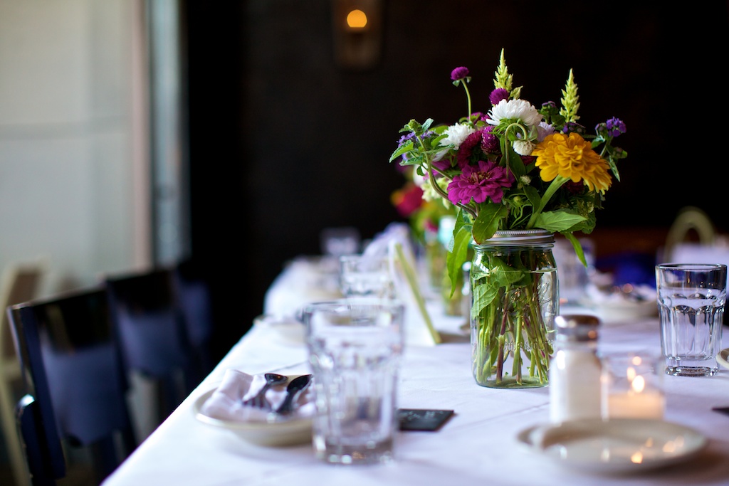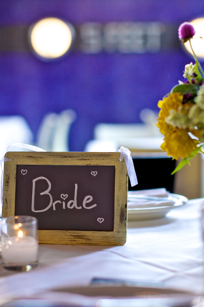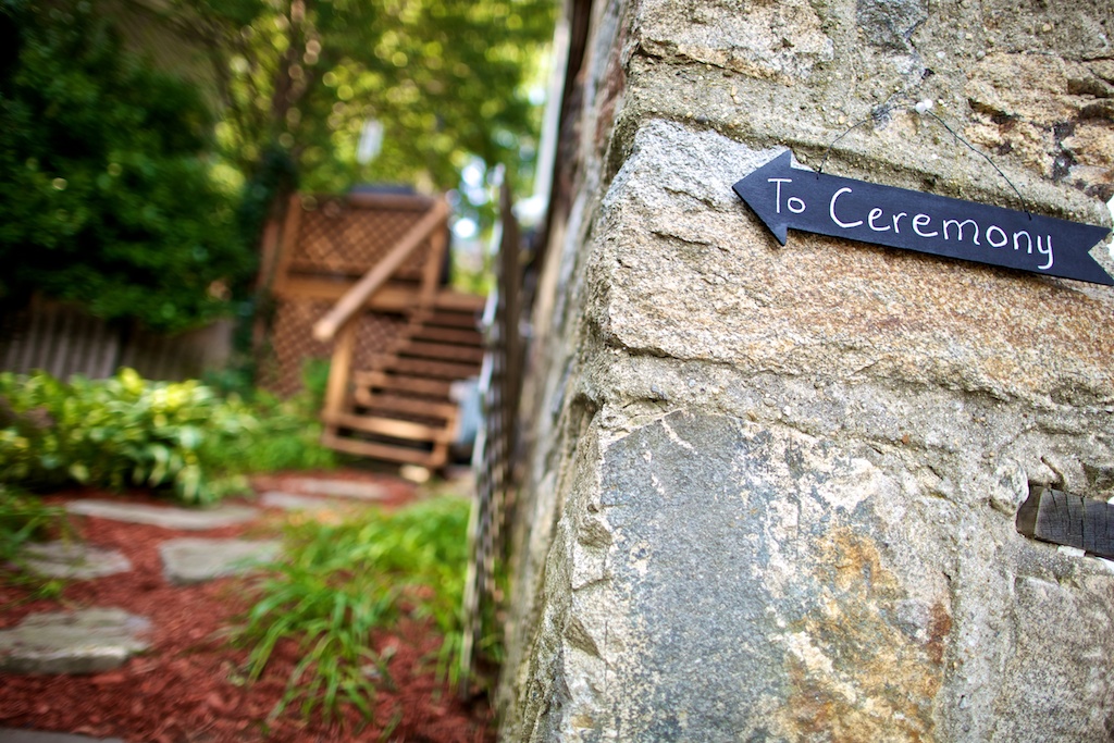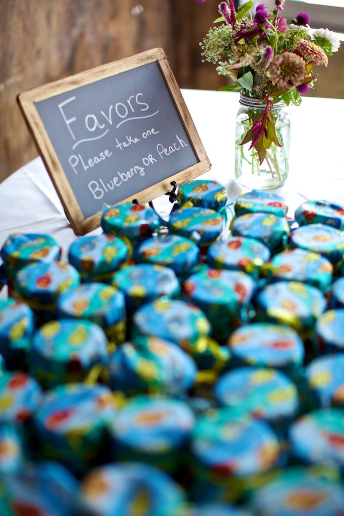 I often hear from brides who are looking for the perfect wedding location and as today’s real wedding proves sometimes the perfect place is right in your backyard – literally! This real rustic wedding featured an intimate outdoor ceremony with a personal reception at a local upbeat restaurant. I have said it a million times but it is the small details at a wedding that can make the biggest impact – like the chalkboards this bride used for the table numbers and for a directional sign. The jam favors are a great idea which I believe are going to be a big trend. Think about supporting your local community and find a local bakery or farm to make the jam for you.
