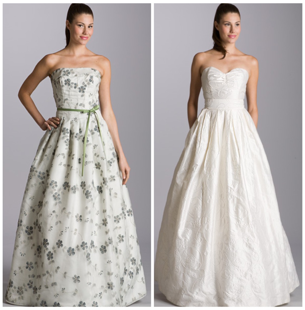 Love Aria gowns…their pricing is generally pretty reasonable! Usually I go straight for the lace, but I have to say I’m enamored with the floral dress featured here.