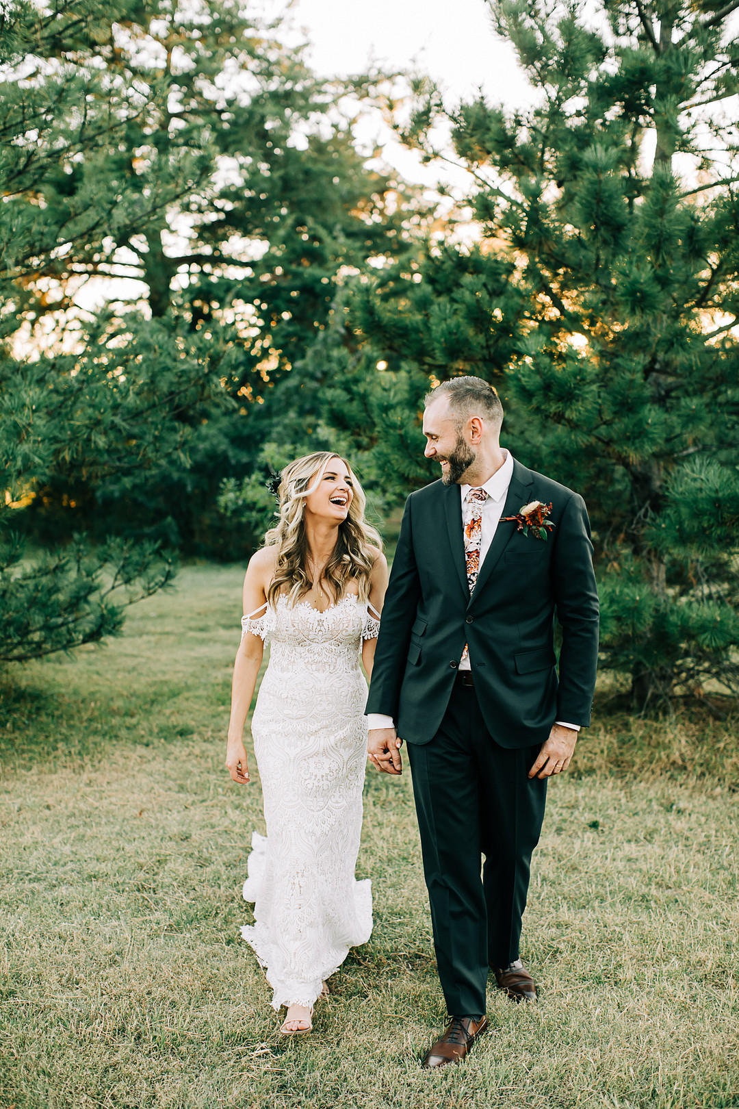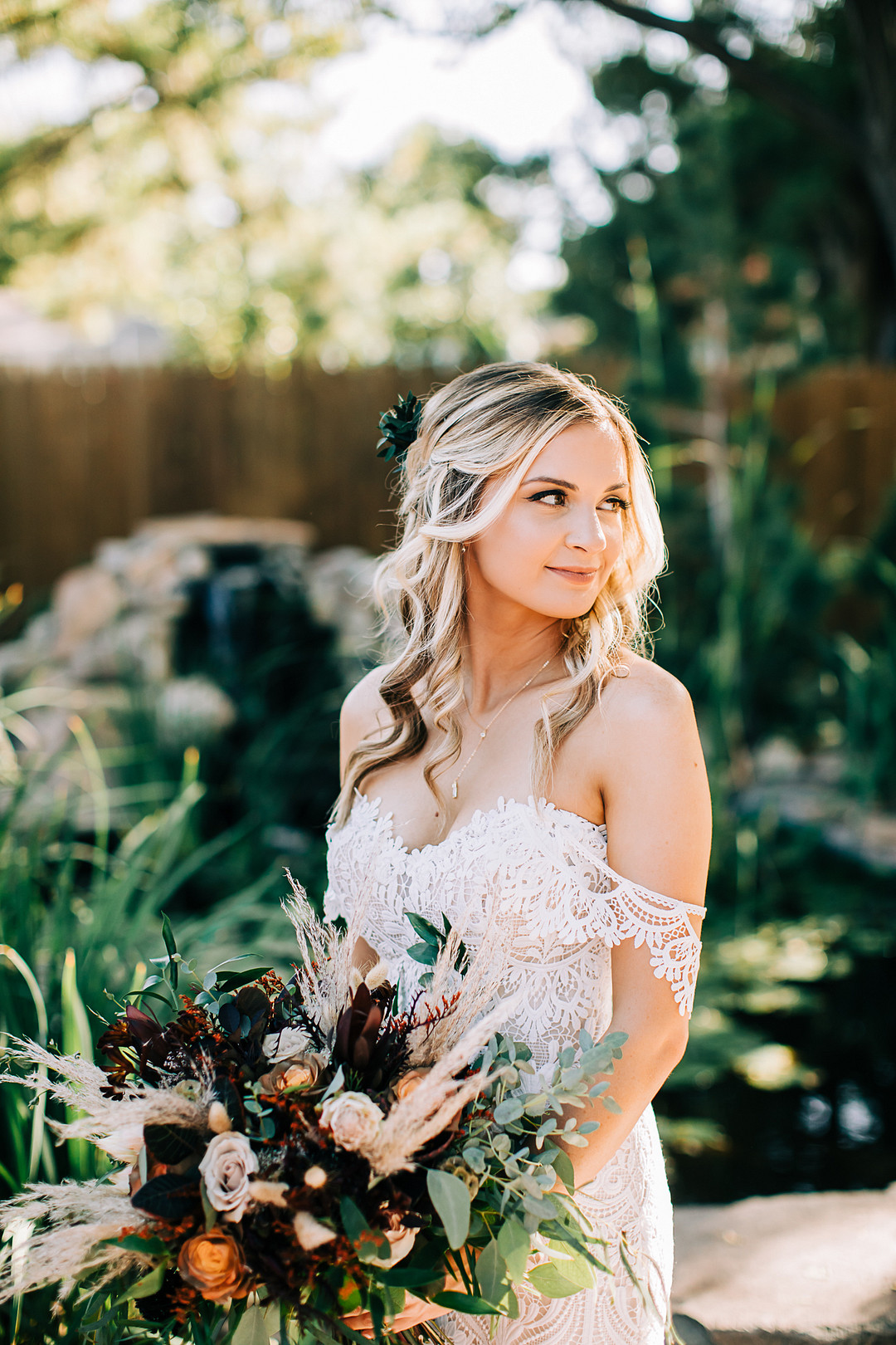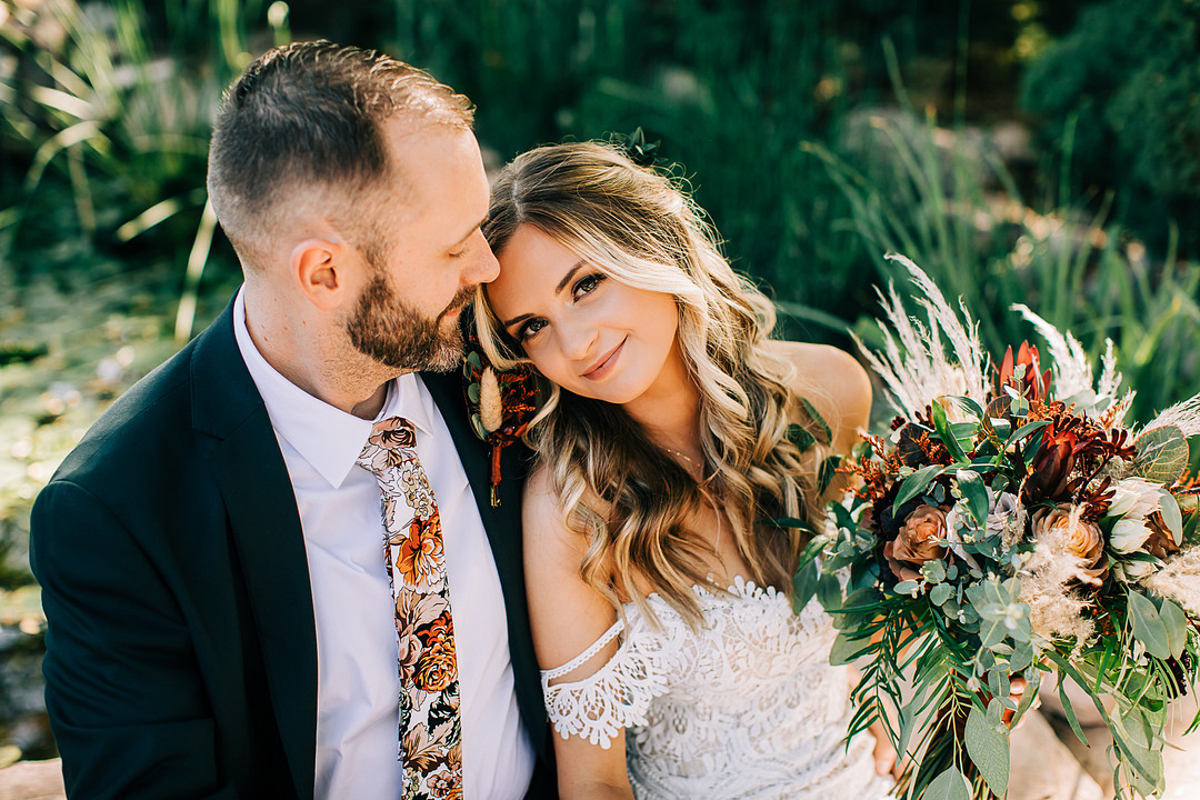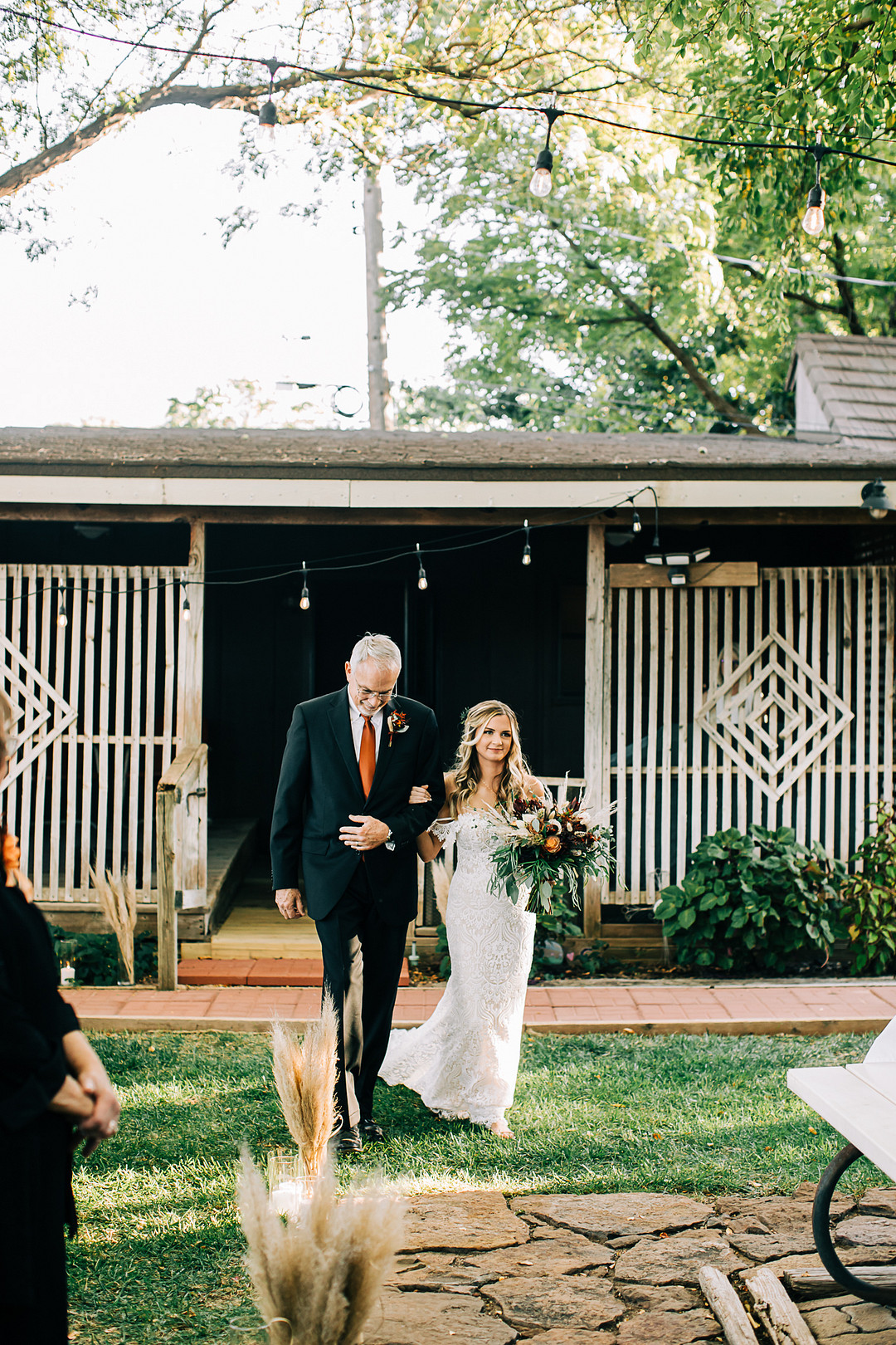 Two words: backyard wedding! Whether you’re planning one or just looking for inspiration, today’s real wedding feature is guaranteed to check all your boxes. In October 2021, Kristen & Darin tied the knot in a sweet ceremony in their friend’s gorgeous backyard. They brought their bohemian wedding dreams to life and decorated the space with natural pampas grass, palm leaves, and colorful bohemian-inspired rugs. Keep scrolling to see more highlights from this bohemian backyard wedding in Texas.