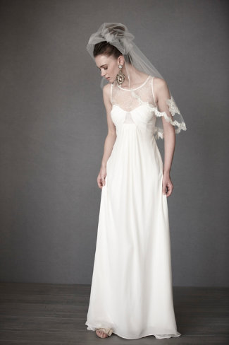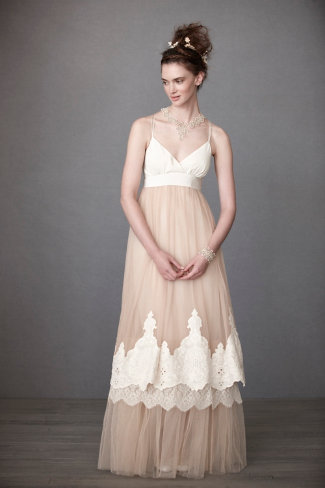 I love helping brides find the perfect wedding dress and lately I have been answering several emails from brides asking for suggestions for a wedding dress that would fit a rustic or country setting. Recently, my favorite recommendation has been the dresses from BHLDN. Brought to you by the popular store Anthropologie, BHLDN’s wedding gowns combine style and sophistication all the while fitting into your country or rustic setting seamlessly.