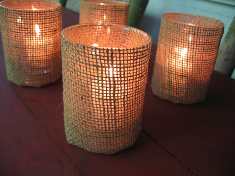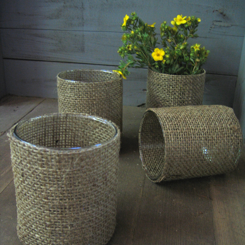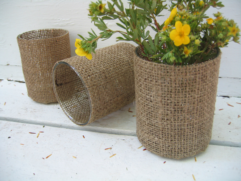 We have an all-new product over at the Rustic Wedding Chic Shop: Burlap votive holders which make the perfect accent for your rustic or country wedding. These burlap votives are so versatile that they can be easily used as vases and the glass insert can be removed as well. If you are thinking of using burlap at your wedding check out our Burlap Wedding Inspiration from the other day.