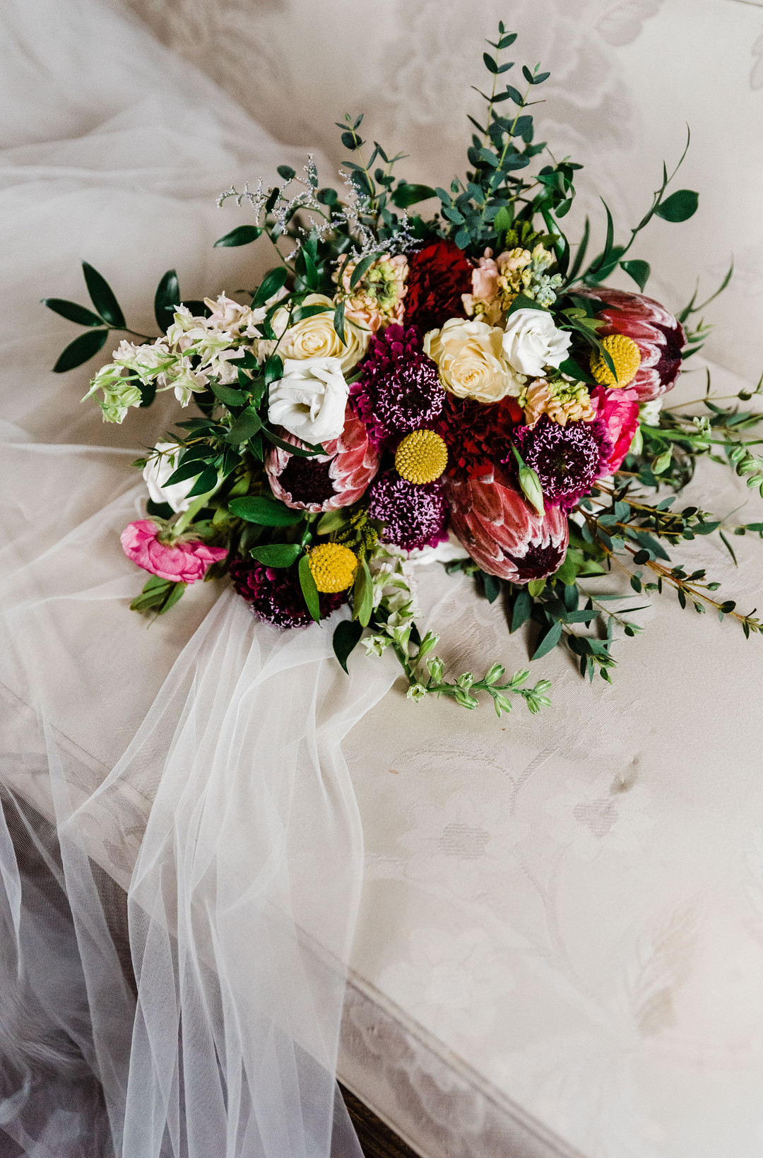 A beautiful bouquet filled with pops of deep magenta, sunshine yellow, and passion pink bring this colorful petal themed wedding styled shoot to life! From the photographer: The vision for this styled wedding was to really play on color! Bold, rich and vibrant colors to bring this wedding to life! The session was themed around petals and florals and the backdrop fit the vibe perfectly. Thank you to Kaytlin Lane Photography for sharing this colorful petal themed wedding inspiration shoot with us!