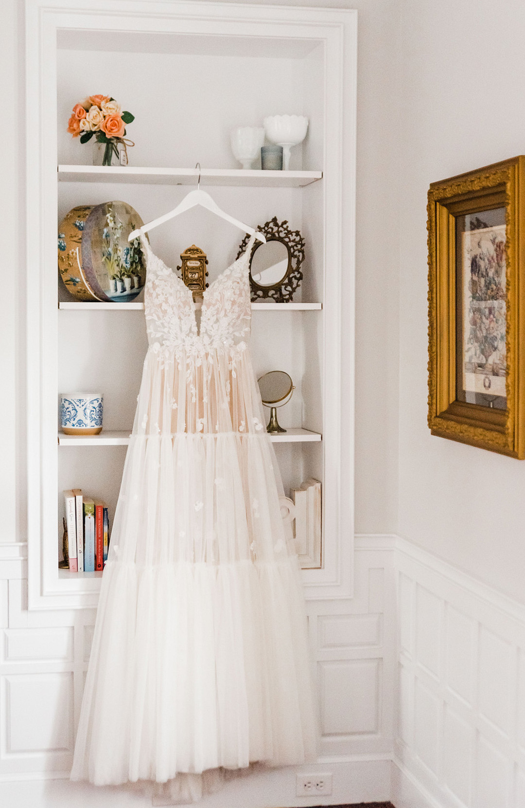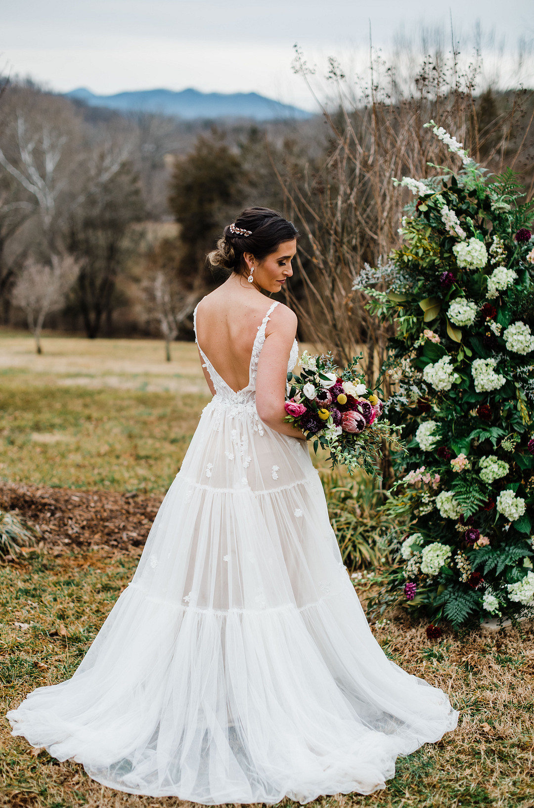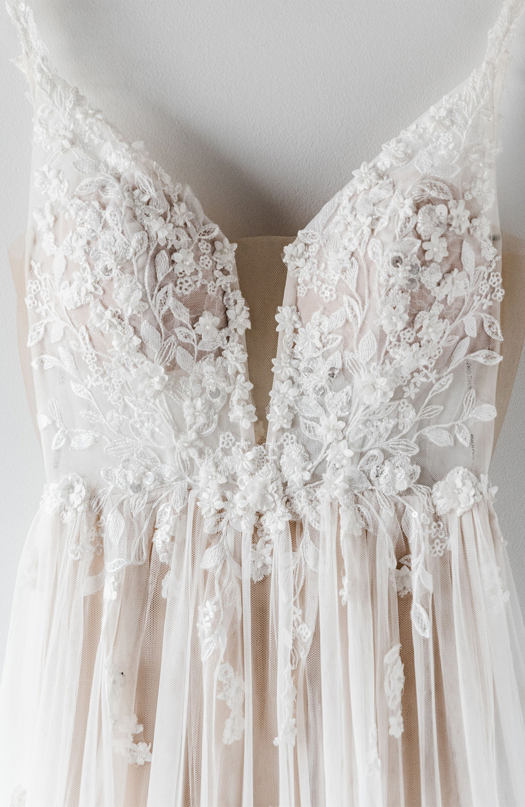 “The dress was so romantic with layers of tulle and petals flowing down the bodice onto the skirt.” –Kaytlin Lane Photography