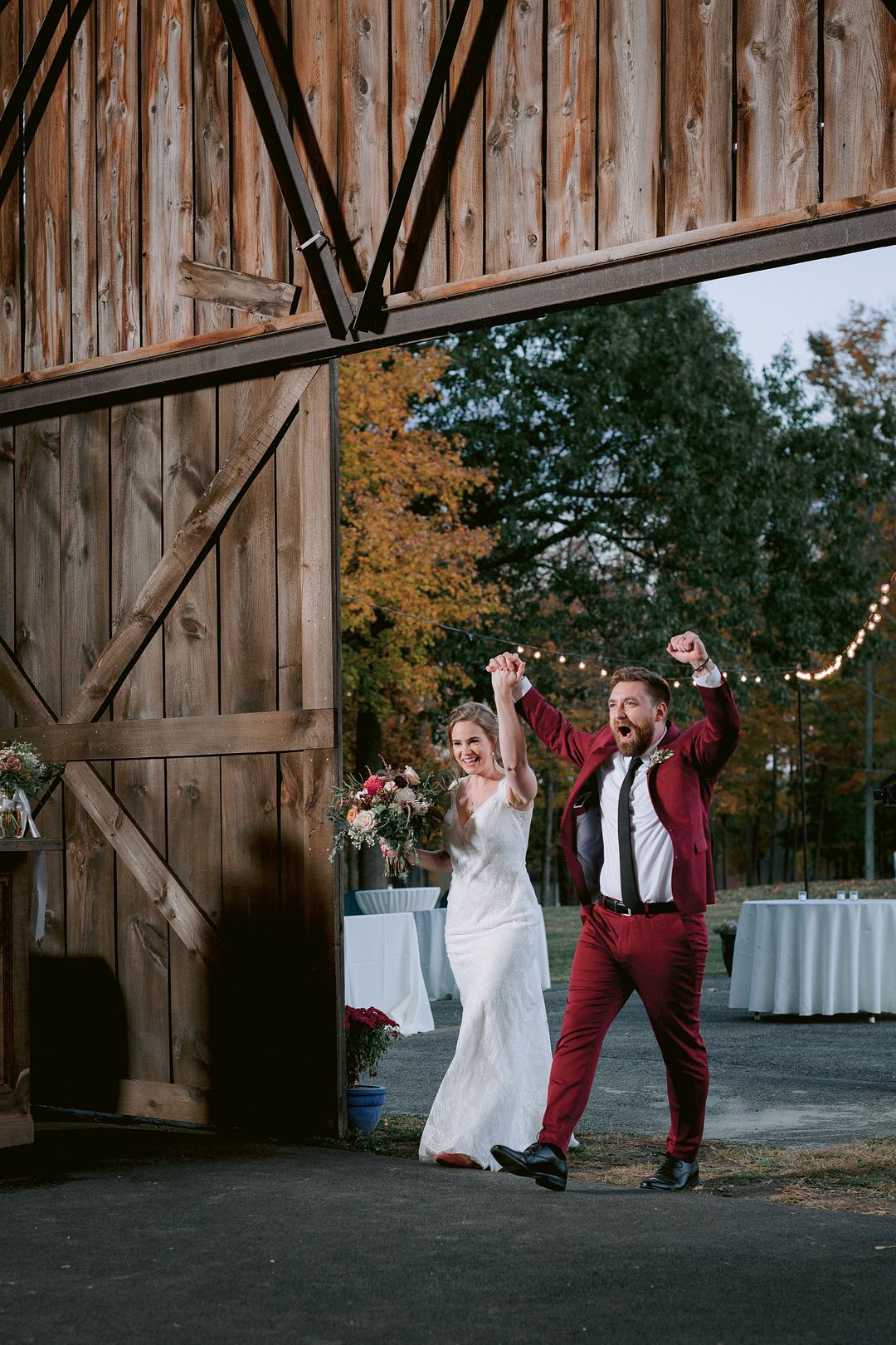 Taking place at the rustic Connecticut wedding venue, CandLight Farms Inn, this stunning fall wedding combines an outdoor rustic ceremony with a classic barn reception. From the photographer: Joelle and Josh filled their wedding day with the most personalized touches. They weren’t overtly one style over another, but incorporated everything from modern boldness. They made the old airplane hangar feel like home as they decorated it with vintage vases, muted florals, and served their favorite Trader Joe’s snacks for dessert. They were even surprised by a plane taking off during their ceremony. Thanks to Beet & Blossom for sharing this wedding!