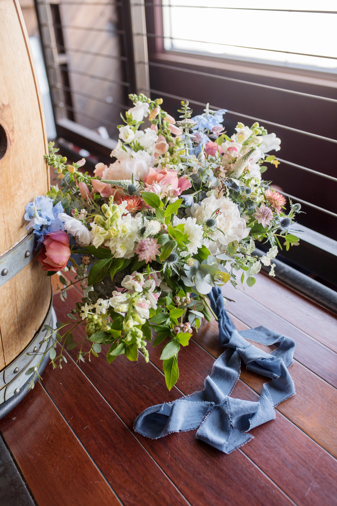 Erin and Eric planned a gorgeous celebration for their friends and family. A friend of Erin’s is an AMAZING florist in Colorado and styled their florals to perfection. The wildflower inspired bouquets and centerpieces wowed against the rustic backdrop of Saltwater Farm Vineyard. The ceremony site, set up among the vines, was decorated with wild flowers and copper piping. It was as unique as it was beautiful. The couple danced the night away in the vineyards tasting room, which is a converted airplane hanger. Twinkling bulbs provided the perfect ambiance to accompany the wine barrels, tanks and dark wood surrounding the celebration. Thanks to Julia Jane Studios for sharing this real wedding with us today.
