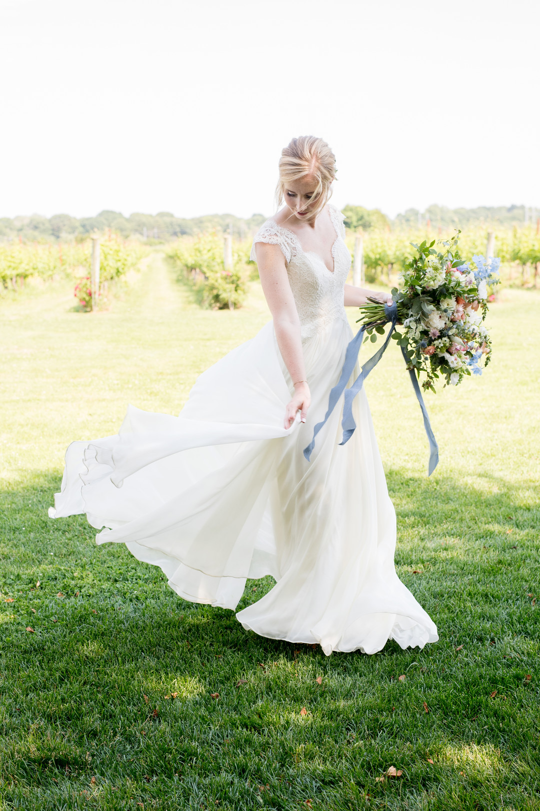 Sources – Ceremony Location: Photographer: Julia Jane Studios//Venue: Saltwater Farm Vineyard, a Connecticut rustic wedding venue //Makeup Artist:Erica Martell//Bakery: Luckybird Bakery//Band:Ripcord//Dress Designer: Leanne Marshall//Floral Designer: Farmette Flowers//Dress Store: Everthine Bridal Boutique//Hair Stylist:Renee Russo//Caterer: A Thyme To Cook//