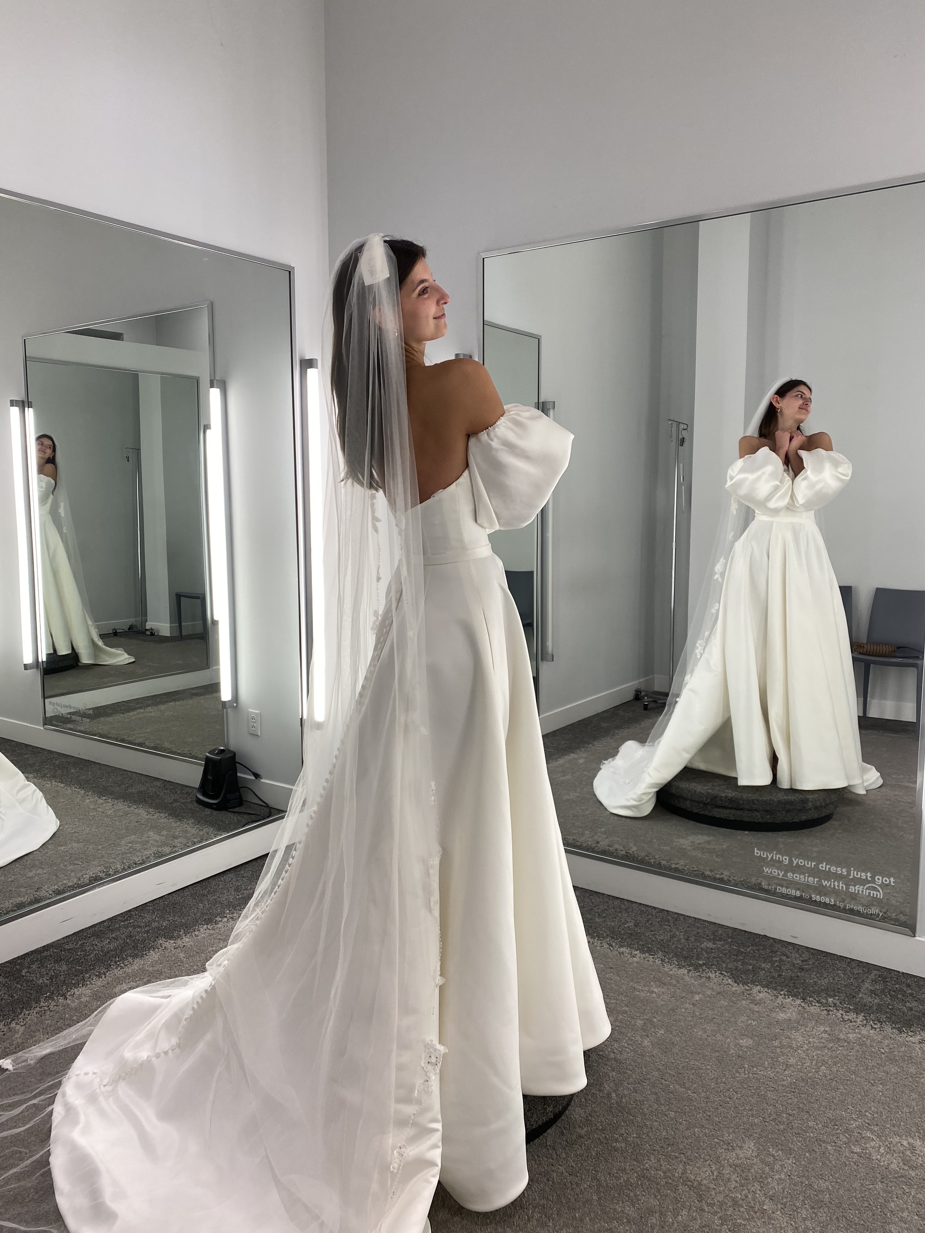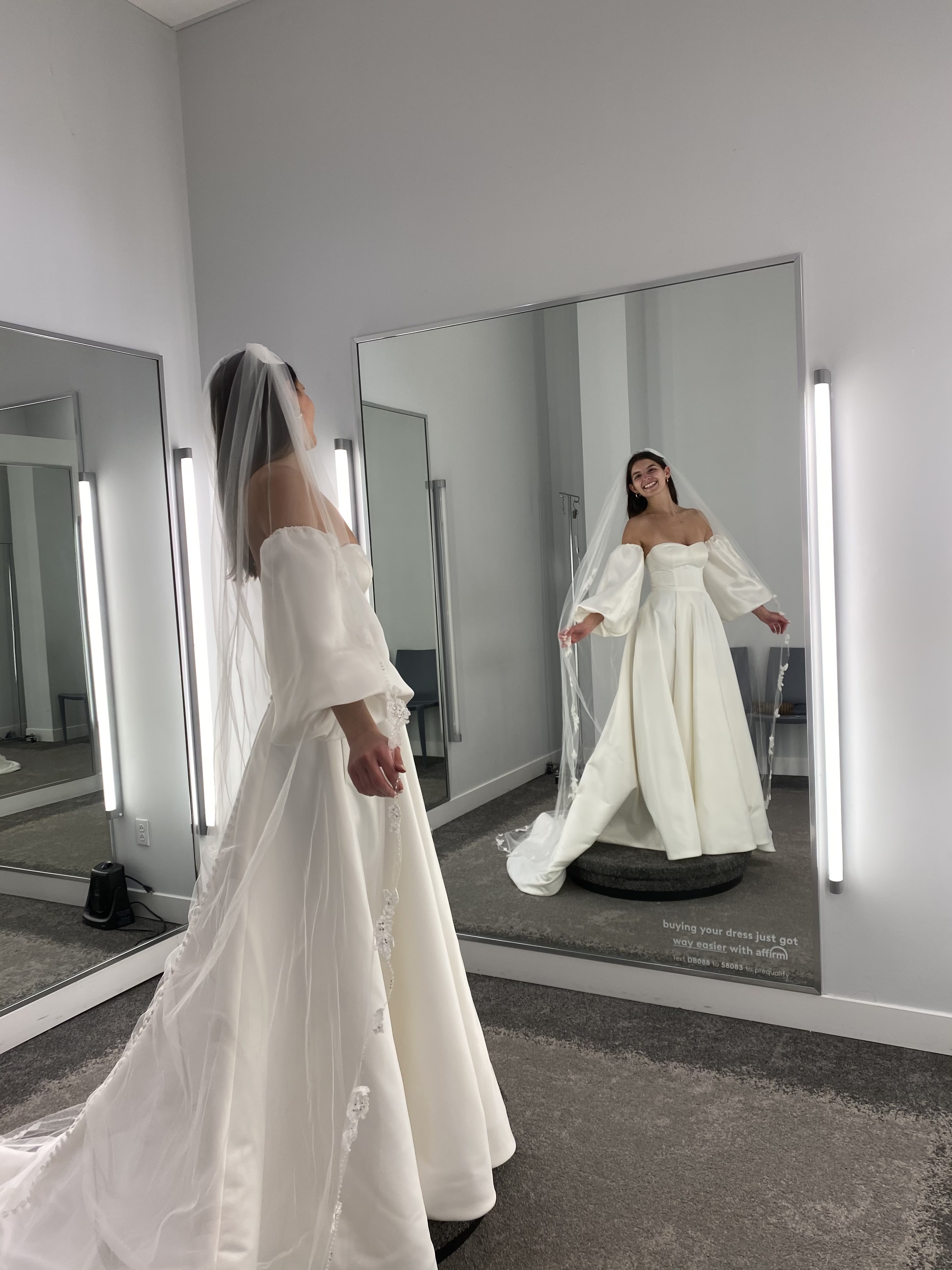 Hello beautiful, Samantha N. here! I’m a Social Media & Influencer Marketing Coordinator at David’s Bridal, and in my role, I get to build meaningful relationships with brides just like you! Something I’ve learned during my time at DB is that no two brides are the same. Part of my job includes helping influencers find their dream dresses, and I’m always inspired by their ideas to customize their gowns to fit their personal styles—so inspired that I customized my own DB wedding dress when I got married in 2021!