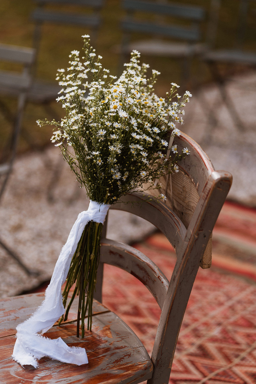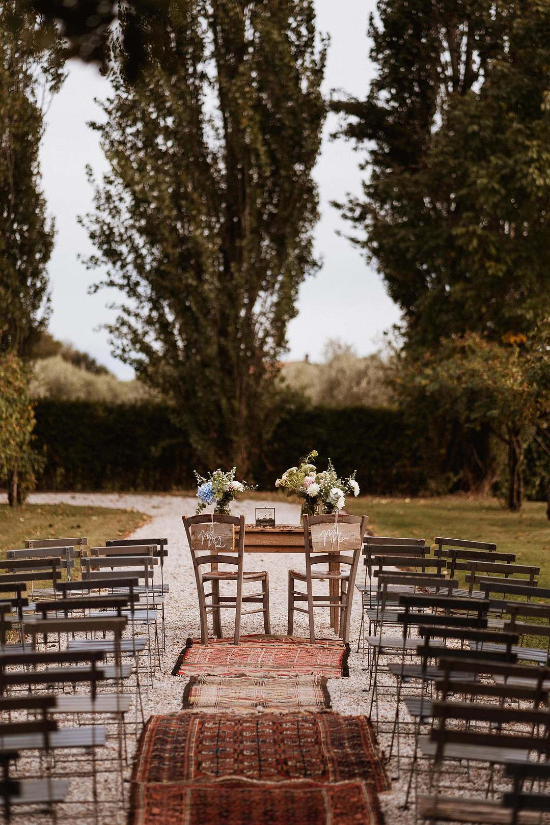 “The ceremony was very touching; they exchanged their promises on the greenery of the location, where a simple and rustic setting was arranged with pastel and wildflowers.” – Luisa Basso