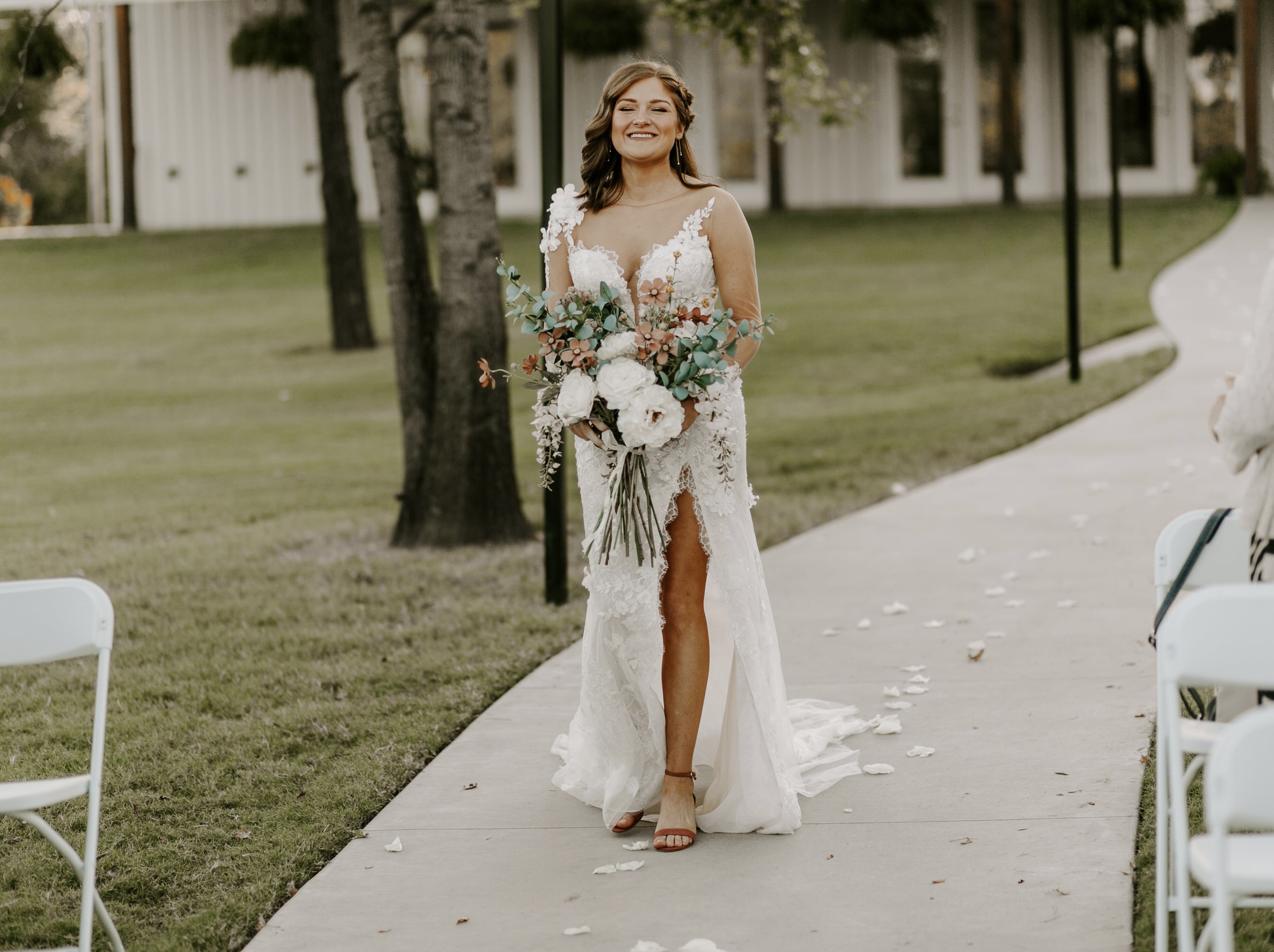 “I asked Dylan questions about how he envisioned our wedding day. Did the vision in his head include me wearing a veil? Did he want the first time seeing me be when I was walking down the aisle? Those questions helped a lot! I did not wear a veil and we didn’t do a first look and we have absolutely no regrets.” – Andrea