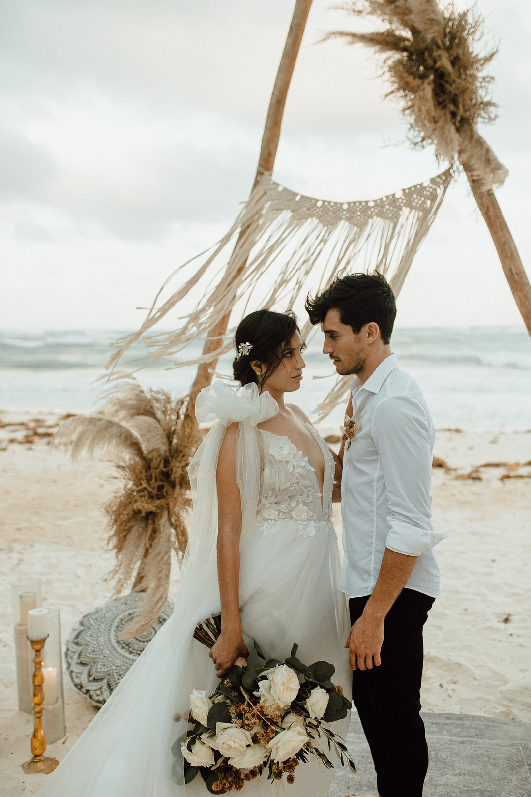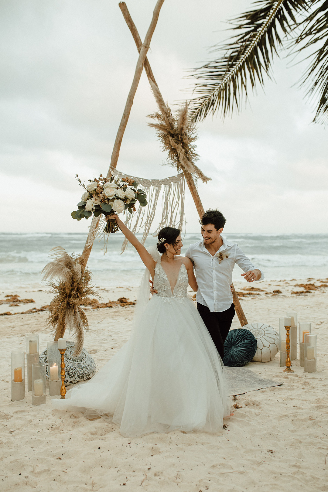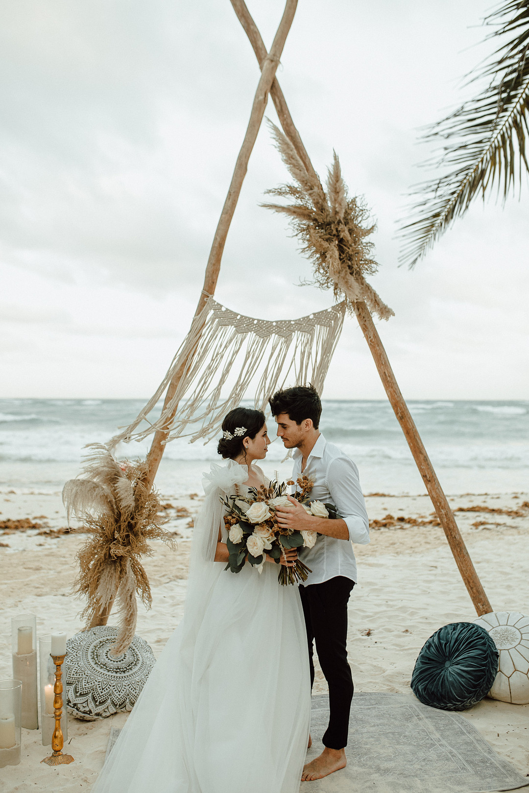 Today we’re taking a trip to the beautiful country of Mexico. Mariana & Andre tied the knot in a breathtaking elopement on the shores of Tulum. From the PR + marketing team for this event: Wood, natural elements, water, and elegance in each corner were our inspiration. The ambiance was so intimate, deep, and romantic. The wild ocean in front of them, while they meet in an endless connection, and the first kiss as hubby and wifey will always stay in our hearts. Thank you for sharing this romantic elopement in Tulum with us, My Planner Journal. Keep reading to see more from this special day!