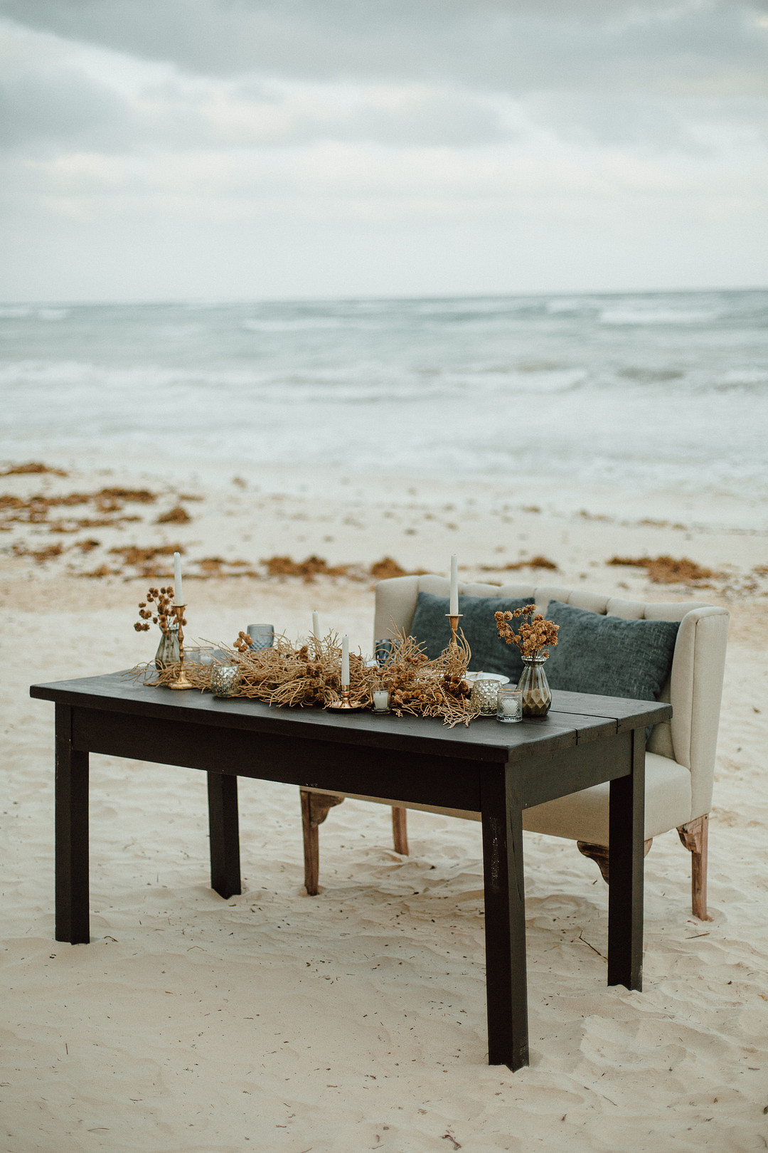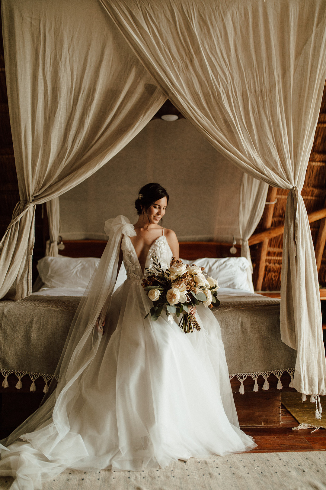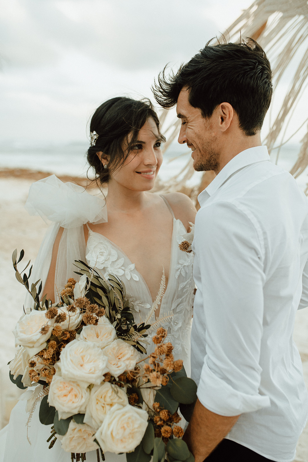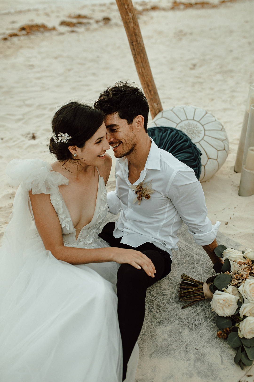 Today we’re taking a trip to the beautiful country of Mexico. Mariana & Andre tied the knot in a breathtaking elopement on the shores of Tulum. From the PR + marketing team for this event: Wood, natural elements, water, and elegance in each corner were our inspiration. The ambiance was so intimate, deep, and romantic. The wild ocean in front of them, while they meet in an endless connection, and the first kiss as hubby and wifey will always stay in our hearts. Thank you for sharing this romantic elopement in Tulum with us, My Planner Journal. Keep reading to see more from this special day!