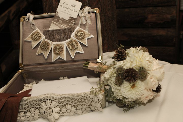 I have a real rustic wedding today which was submitted by the bride herself and took place in San Diego at Pine Hills Lodge. The bride told us that she wanted “a rustic wedding with romantic, vintage touches” and by the looks of these pictures I would say the bride got just what she wanted. I know we are still in summer mode but for all you rustic fall brides use this fall wedding for a little last minute inspiration!