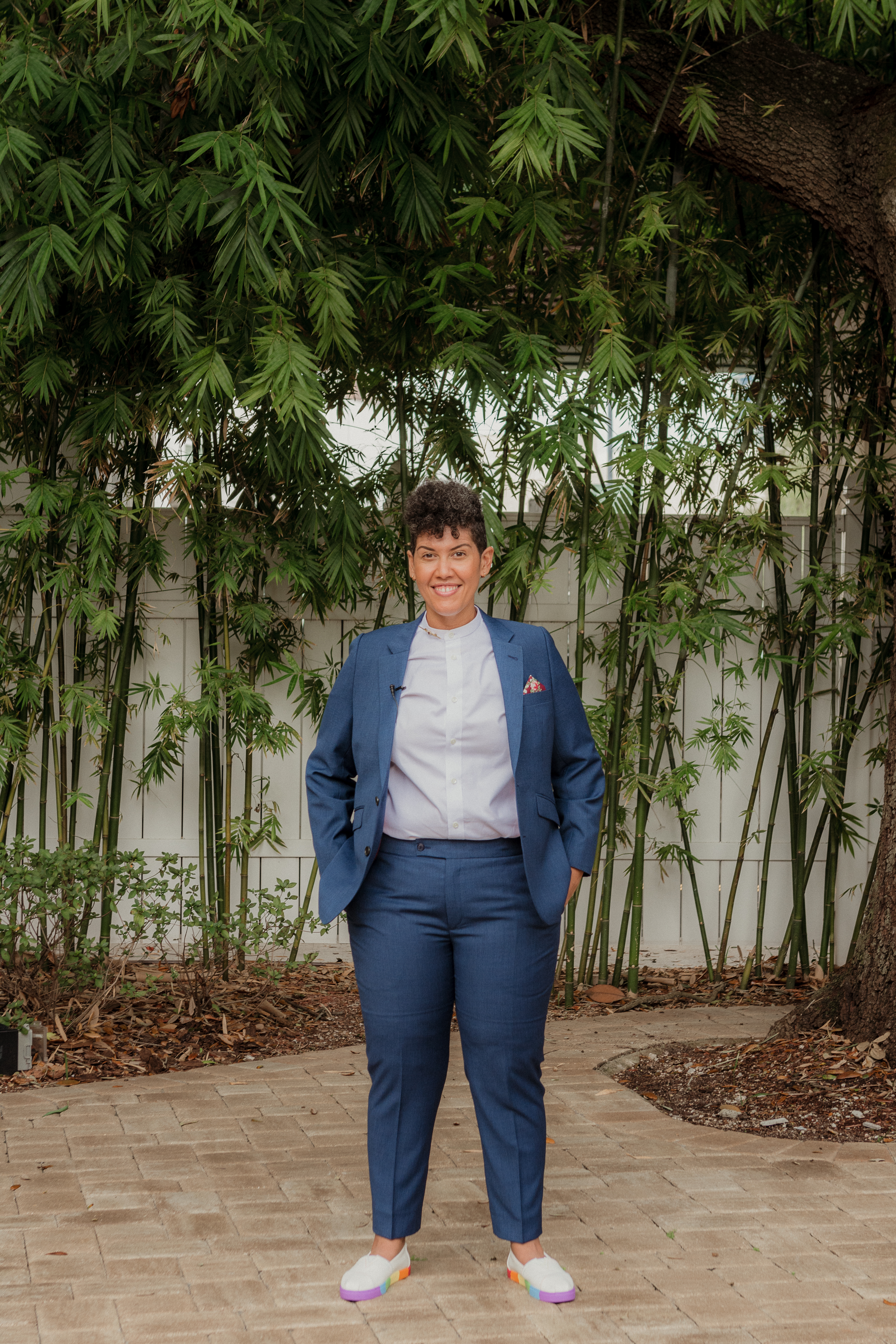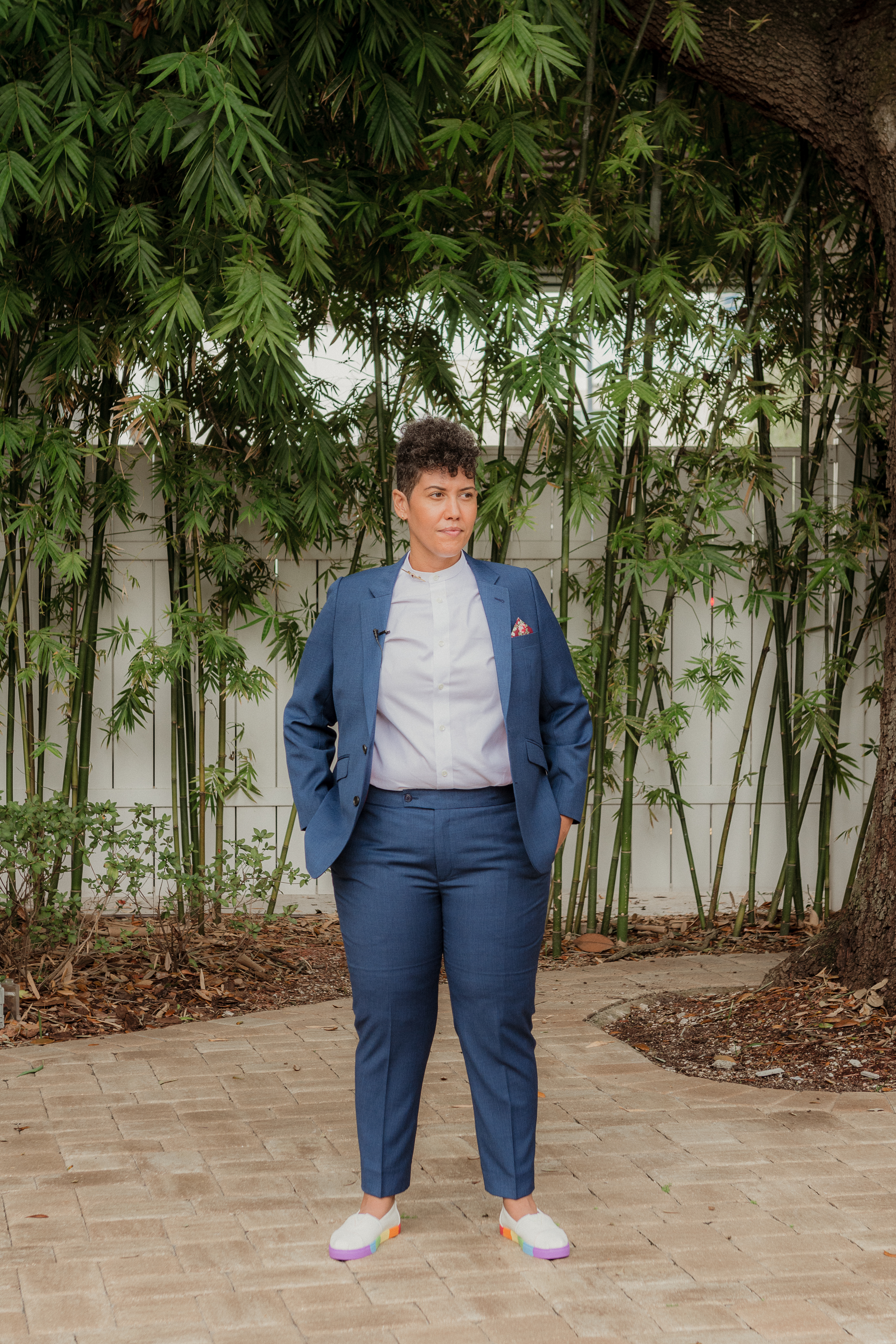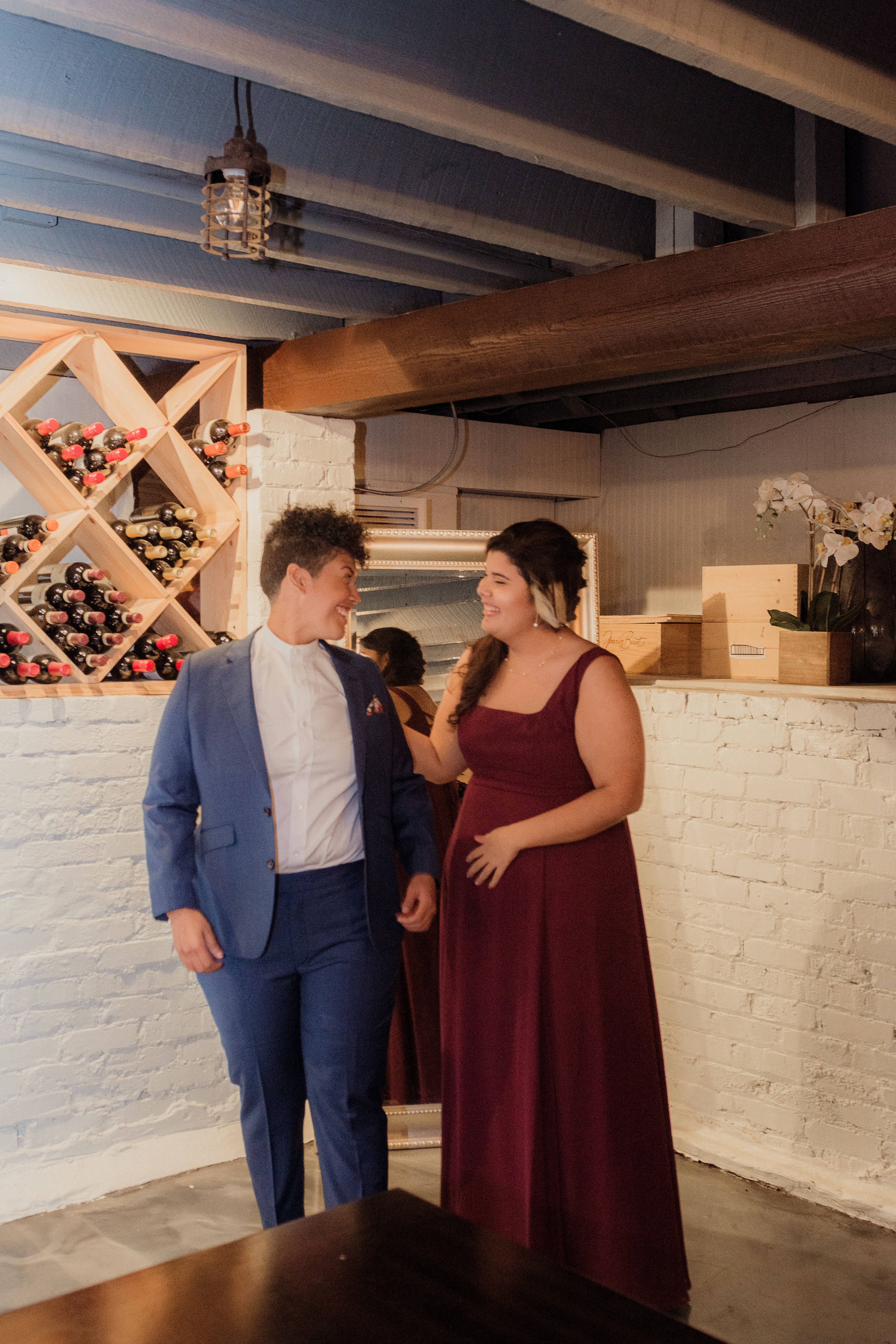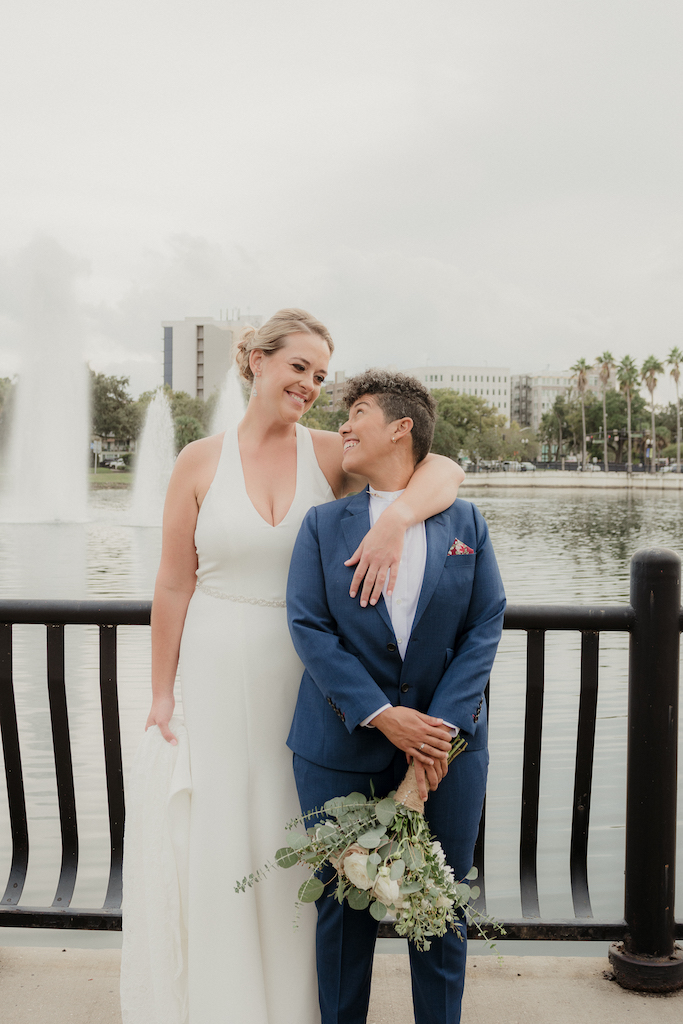 “We are two very practical people so it took us a long time to decide on what our look would be. Maria went with a custom suit, and I said yes to the dress at David’s Bridal.” – Aislinn