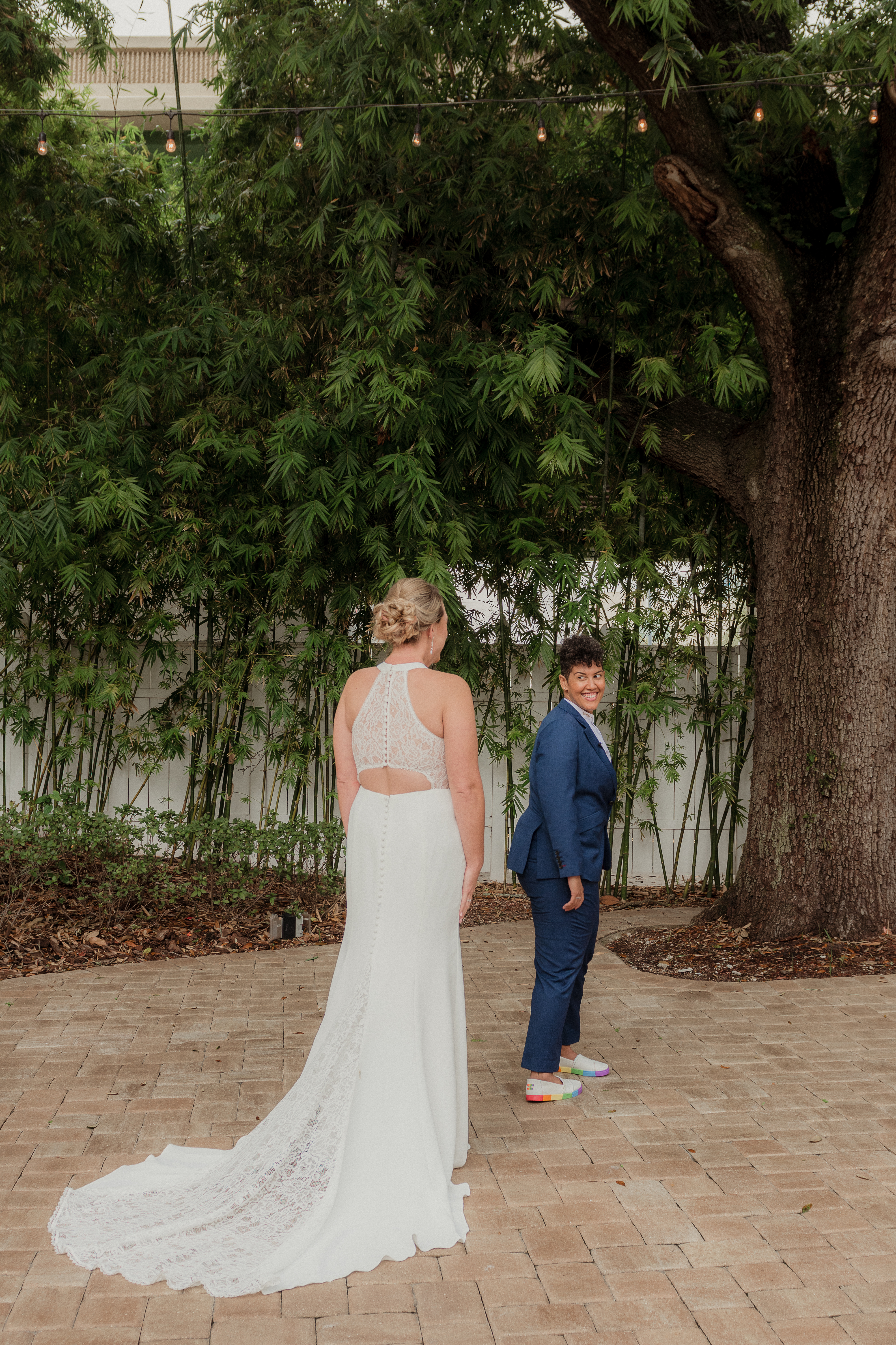 Dreaming of fall-time nuptials in a warm-weather state? Major wedding inspiration is coming your way! Newly-weds Aislinn & Maria are sharing details with us on how they planned their picture-perfect day. From the dress to the venue and even the delicious desserts, every detail of their day was unique to them. Keep scrolling to see more from this fall wedding in Orlando, FL!