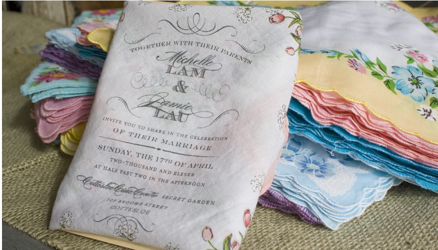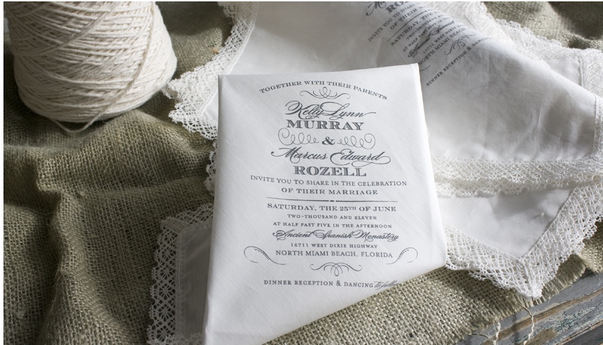 Classic country weddings deserve a classic country wedding invitation and if you are looking for something special to invite your guests to share in your day then look no further than these Handkerchief Invitations from Lucky Luxe Couture Correspondence. Available in both a floral design and a simple white design these handkerchief invitations are my new obsession for a farm wedding or a barn wedding. Imagine how charmed your guests will be when then open their invitation and see these amazingly chic country wedding invitations!