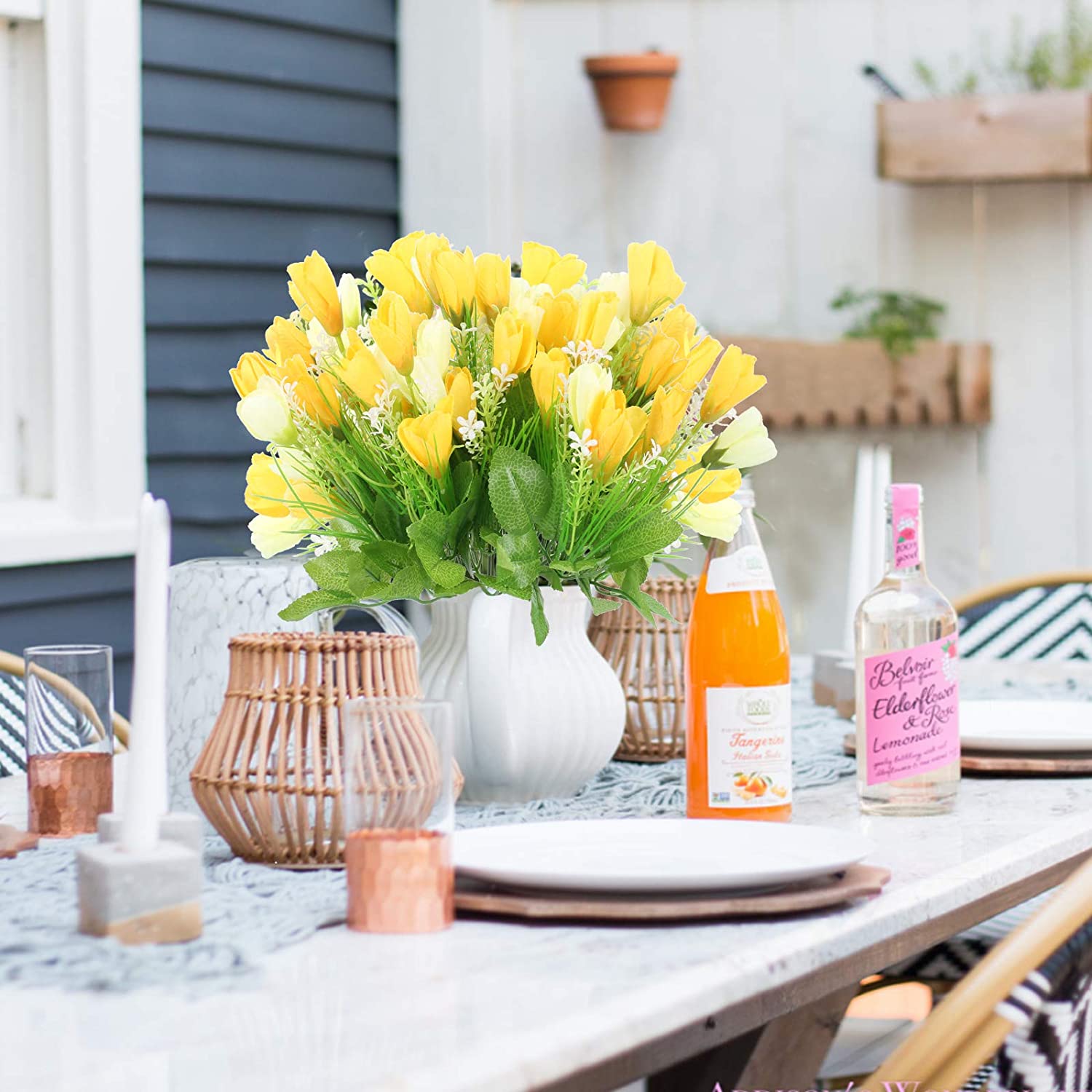 Simple picnic tables can be revamped by using elaborate and stylish tablescapes. Picking a theme that goes with your natural surroundings will create an elevated look. Choosing neutral-colored linens for the tablecloths will allow you to get creative with the decor. You can add whimsical centerpieces, wooden touches, candles, and mismatched vintage vases for a rustic and organic look. When it comes to tableware, you may want to opt for disposable dinnerware. This doesn’t mean you have to compromise on the design though, many disposable options are sturdy, stylish, and recyclable which makes for easy cleanup.