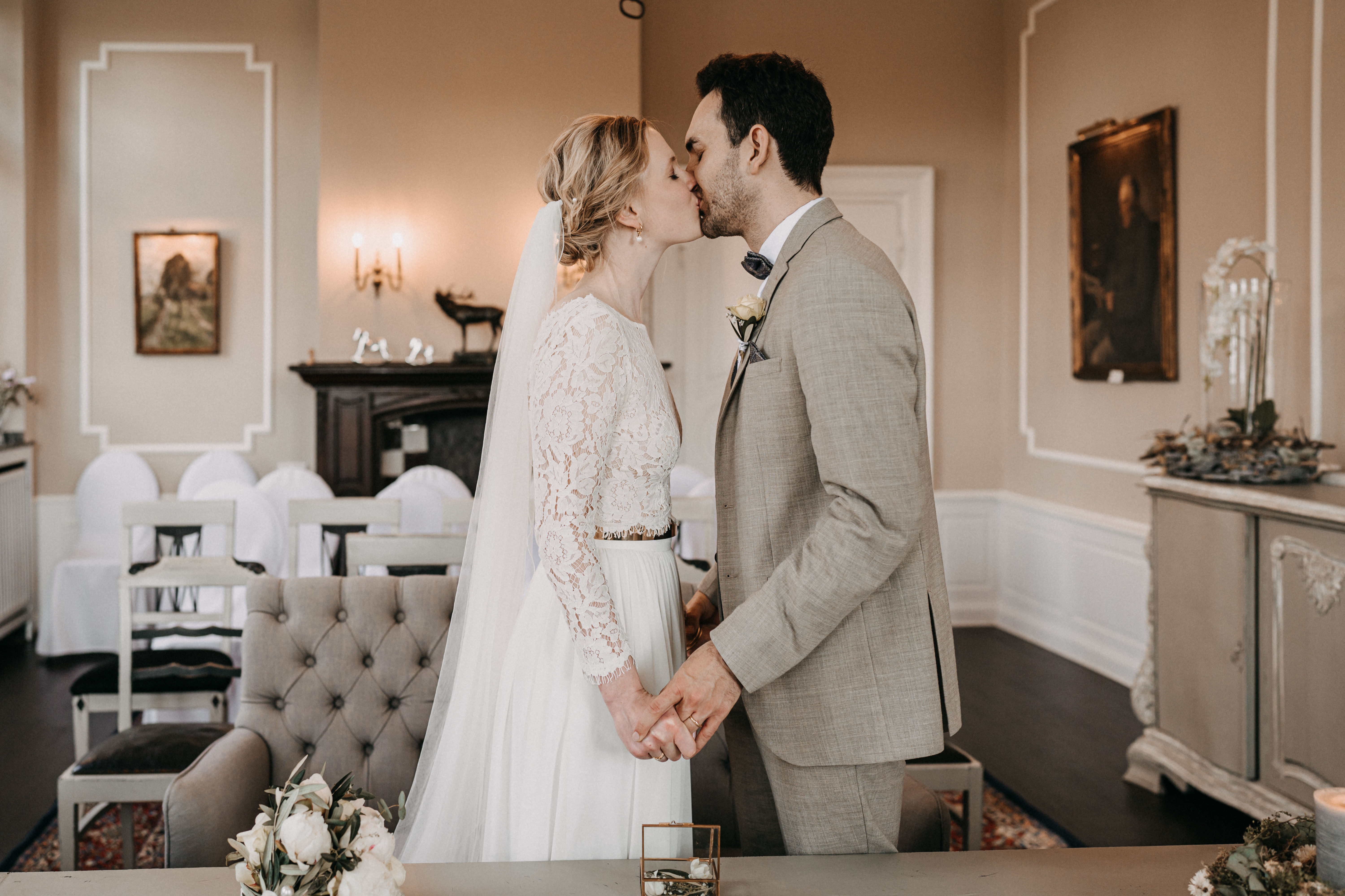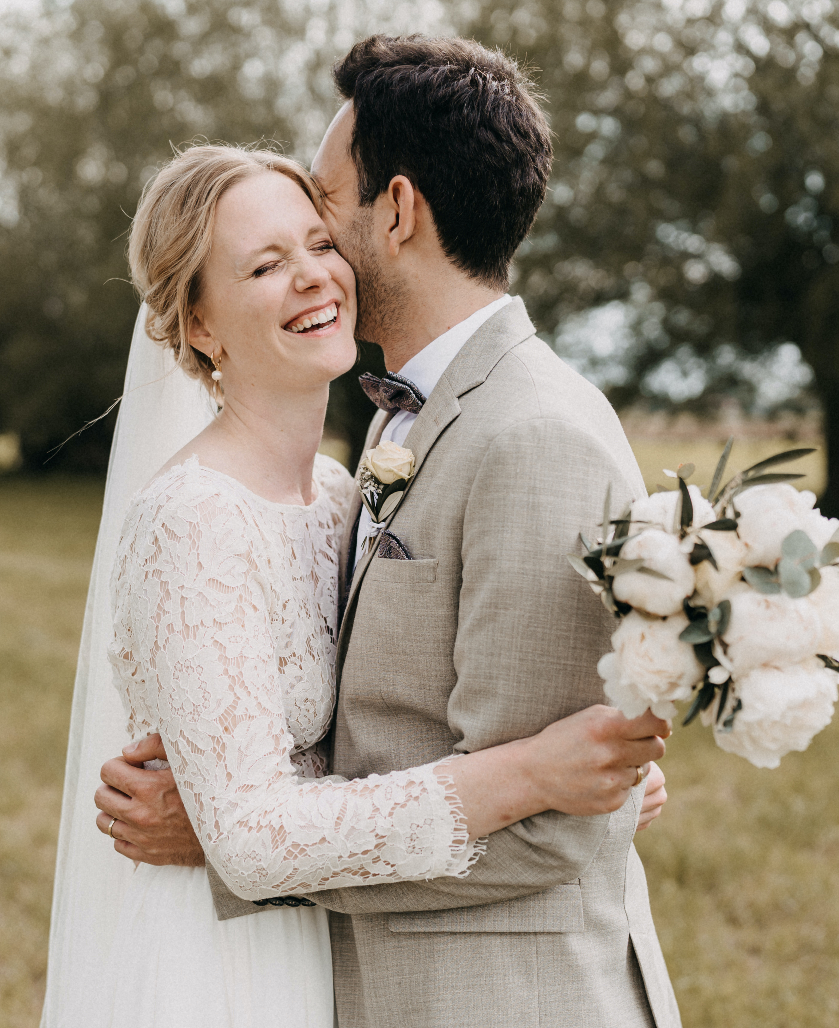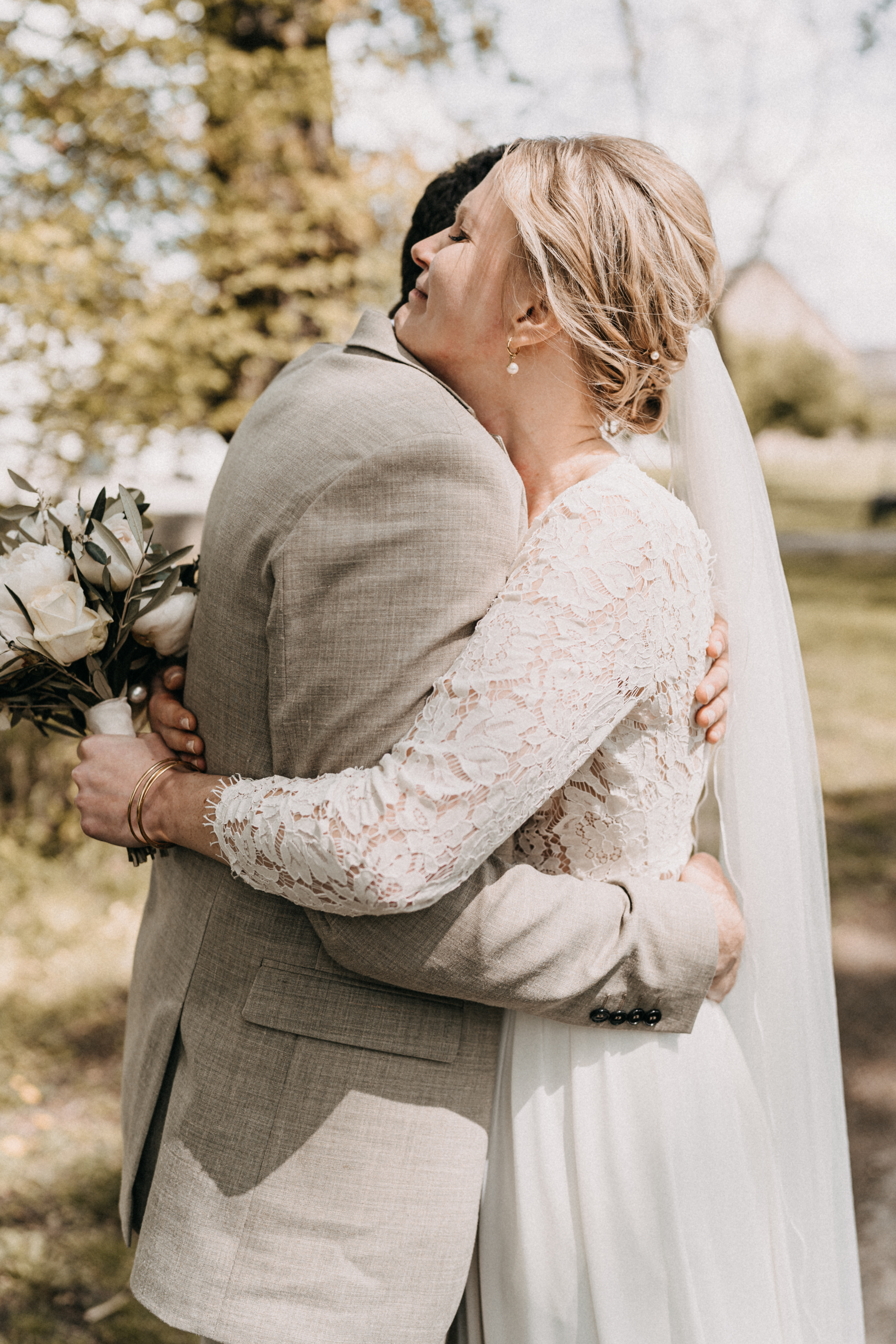 When you combine vintage details, heartwarming touches, and a timeless bridal style, you get a romantic, Pin-worthy wedding, and Nina and Jan’s garden wedding was just that! From the photographer: When the alternative turns out to be the best decision. Instead of canceling or postponing their wedding, Nina & Jan decided to have a tiny wedding in the garden. We ended the day with a wonderful bridal couple shoot, just before the rain started. What perfect timing, a perfect day, perfect people! Thank you for sharing this intimate garden wedding with us, Lola’s Hochzeitsfotografie. Keep reading to see more from this special day!