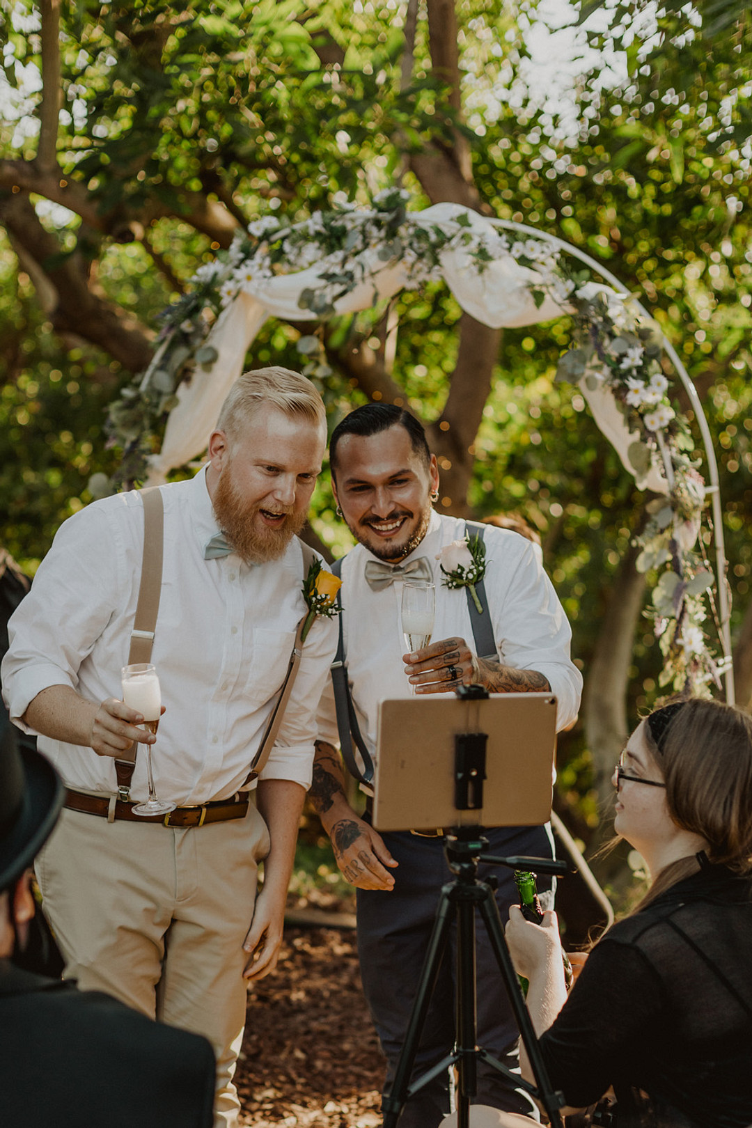 This intimate and rustic avocado farm wedding was nothing short of amazing. Despite their plans being changed, Leon and Ford curated many thoughtful details into their big day that made their ceremony so special! From the photographer: Getting married on July 18th was particularly important to them since it was their 10 year anniversary AND pride weekend. The shutdown certainly tried to throw a wrench in their plans, but they decided to downsize their guests list to only their closest friends and family and they moved their location to this gorgeous, family owned avocado farm. Thank you for sharing this intimate rustic farm wedding with us, Samantha Phillips Photography. Keep reading to see more from this intimate farm wedding!
