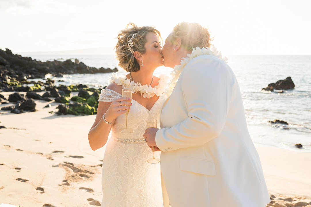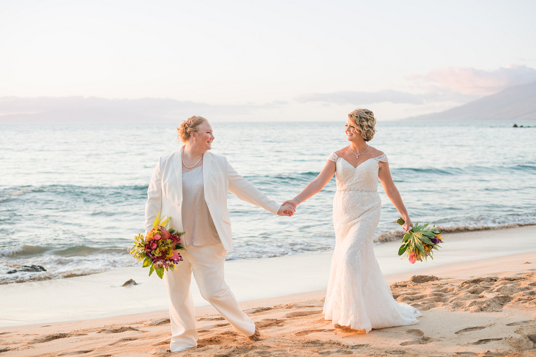 Dreaming of a beach wedding? We’re taking notes from Megan & Kat’s stunning Maui beach elopement. From the photographer: Megan and Kat said Aloha (See ya!) to an at-home wedding and Aloha (Helloooo!) to a Maui elopement! Early in January, these adorable blondes were married on the powder-soft sands of the island’s Southshore, with nothing but the glistening ocean bearing witness. Intimate, loving, and “in the moment,” this Maui elopement is what Aloha (Love) is all about! Thank you for sharing this Maui beach elopement with us, Karma Hill Photography!