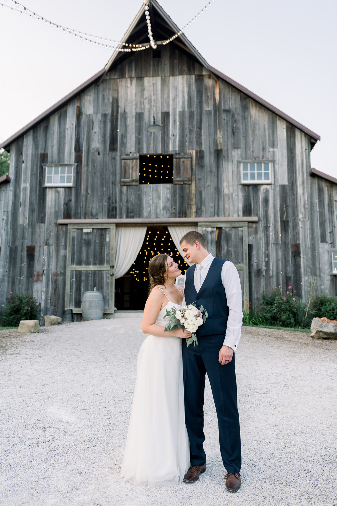 A warm summer breeze and a rustic timber barn created the back drop for last week’s wedding. Garrett and Lindsey’s Heritage Ranch wedding in Sedalia, Missouri was a quintessential midwest summer day. A hot summer day turned into a warm summer night as the couple danced under the glow of hundreds of cafe lights. With a s’mores station, a taco bar, and an excellent DJ, the couple and their friends partied into the night. Thanks to Angie Scott Photography for sharing this wedding with us today.