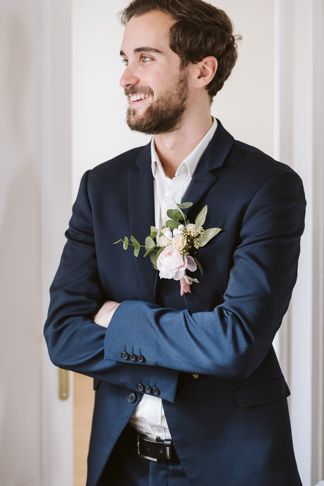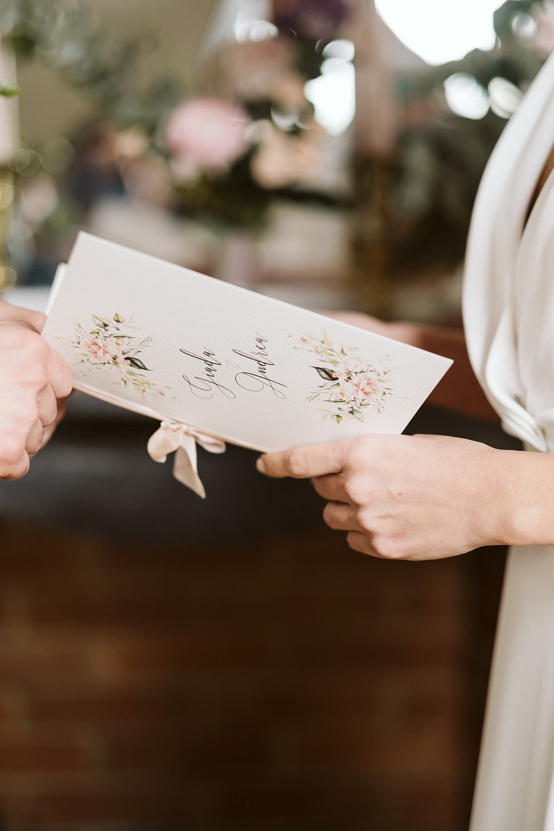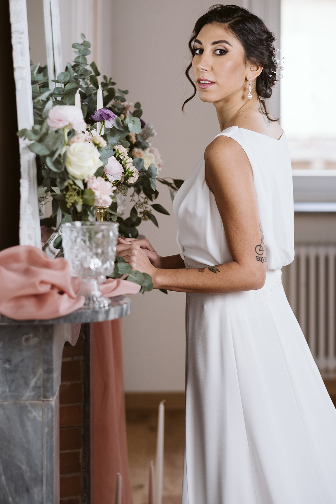 “A was ceremony organized in the living room, in front of a fireplace covered with amazing flowers in shades of pink, green and white.” – Blancorazon Wedding