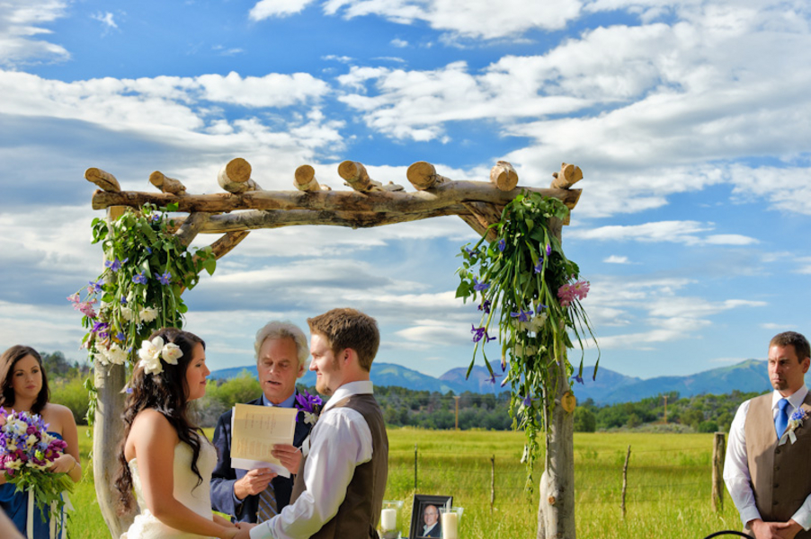 This is one of those weddings where I wish I could have been a guest! Today’s real rustic wedding looks like the ideal rustic wedding location for an outdoor ceremony. Held at the Ridgewood Event Center in Durango, Colorado is part of the Blue Lake Ranch and offers a breathtaking wedding location for rustic brides. I love the wood arbor which this couple decorated with flowers. Arbors can acts as the centerpiece for the ceremony, its elegant and rustic all at the same time! Pay close attention to the wishing tree picture, this little detail is becoming a very big rustic wedding trend!