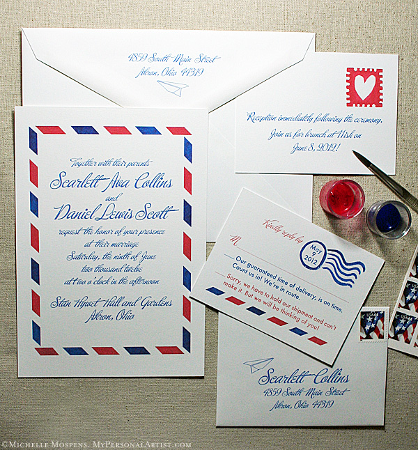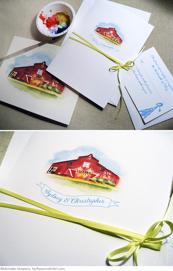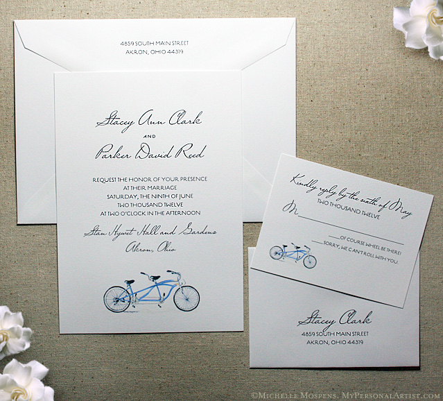 Looking for a wedding invitation that is filled with charm and personality is not always easy to find. Think about having an invitation designed especially for you and your big day. I found some wonderful examples of one-of-a-kind hand illustrated wedding invites from Mospens Studio. These invitations are unique, personal and above all beautiful.