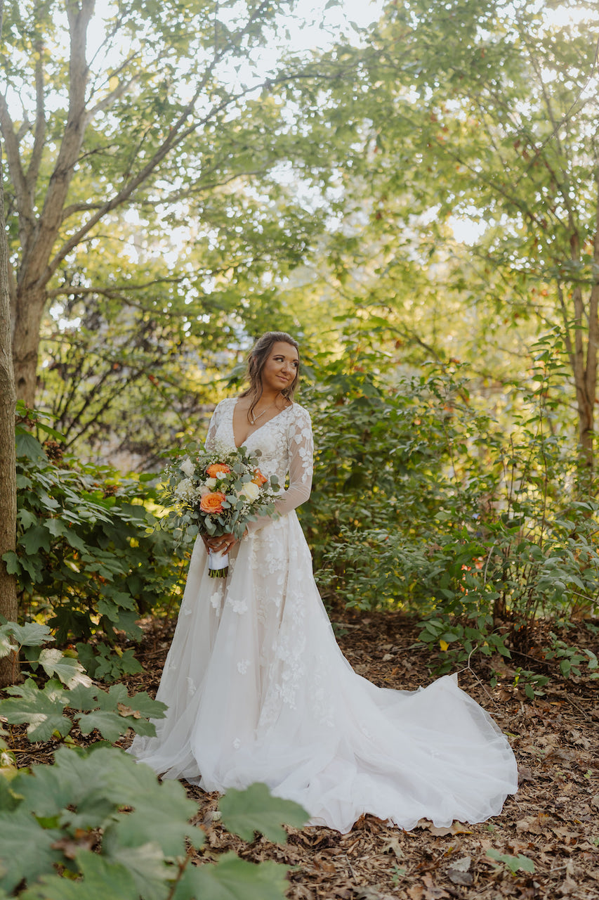 “Just like every other girl, I’ve dreamt about my wedding for years, so I had a pretty good idea of what I wanted. I needed something elegant but fun, specifically something with sleeves and lace. Lastly, I needed to be able to move and dance in my dress. I actually danced a little in every dress I tried on to make sure I could!” – Tabitha