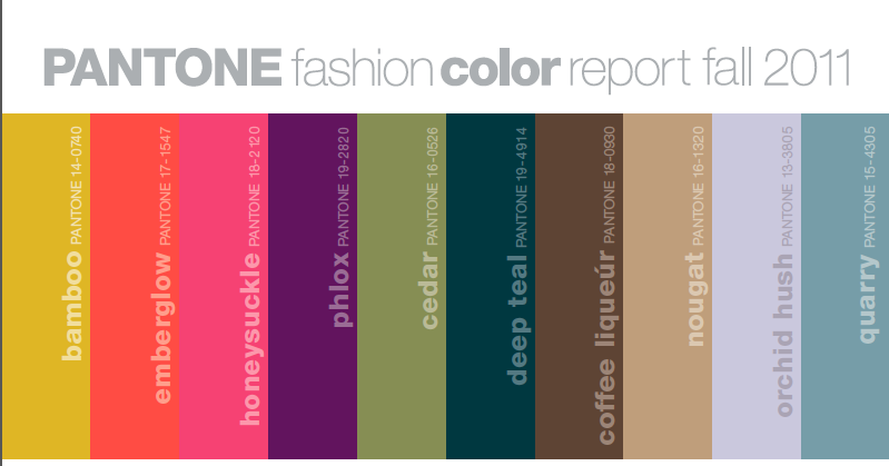 Looking for a little color inspiration? Thanks to Pantone and their fall 2011 fashion color report you can have a quick guide to the seasons most fashionable colors. According to Pantone this fall season is all about sensibility & spirit! Stay tuned for the Spring 2012 report.