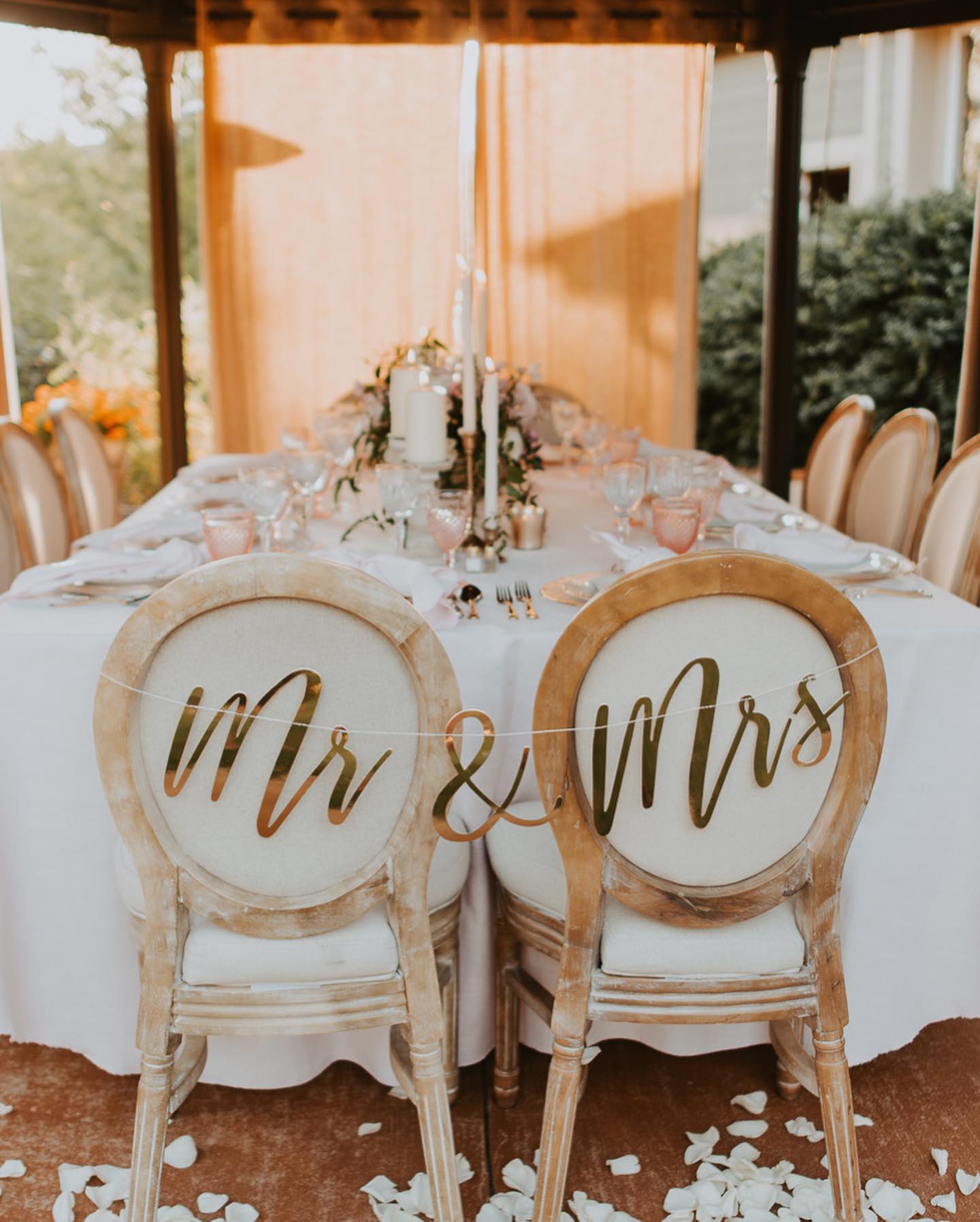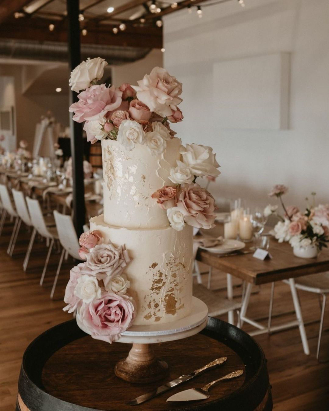 We love the idea of color coordinating all the elements of your big day — everything from decor to desserts! From there you can add subtle (or not so subtle!) pink touches into your tablescape, wedding cake, as well as your ceremony and reception space to keep the look and feel of your wedding day cohesive.