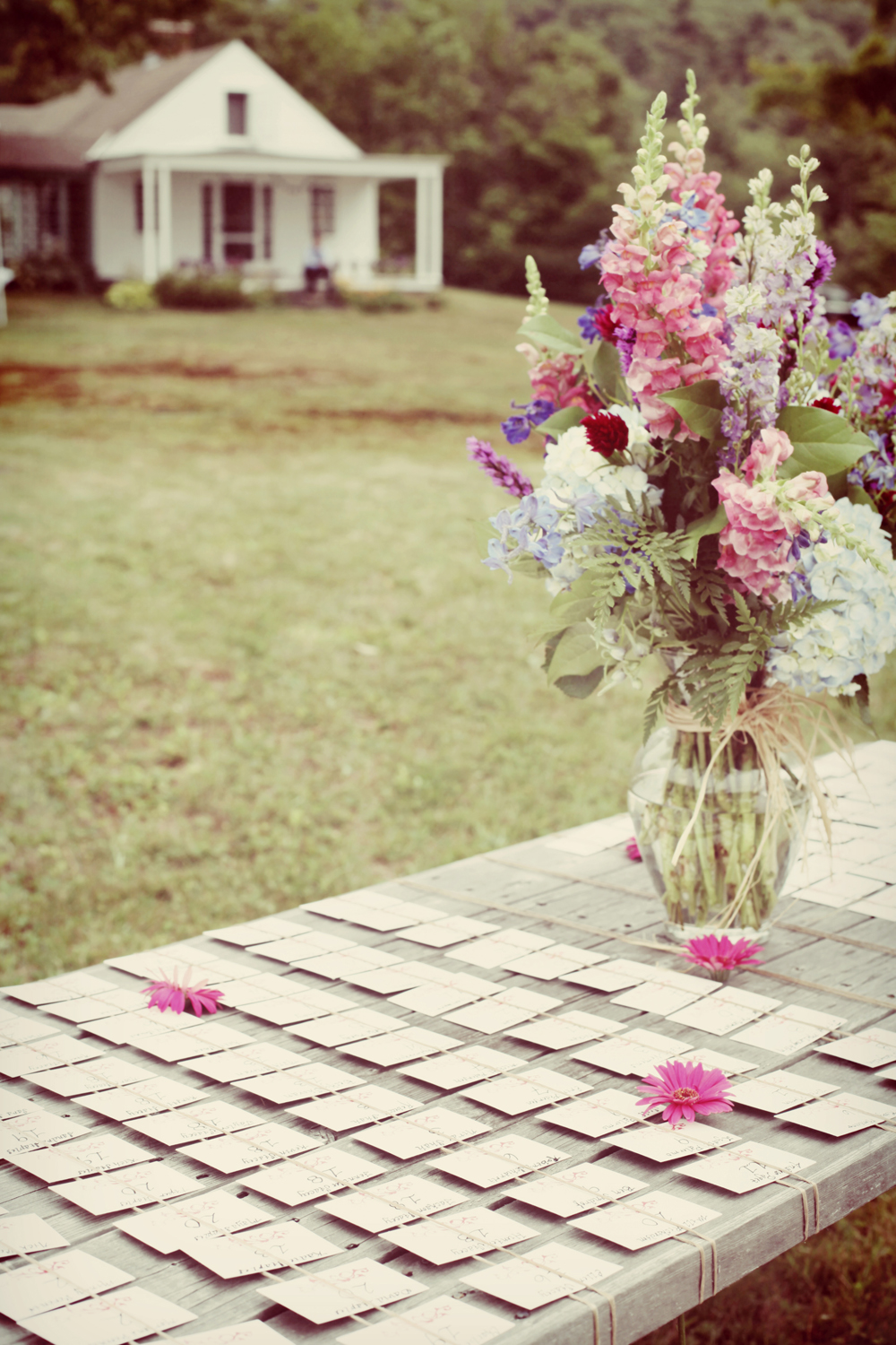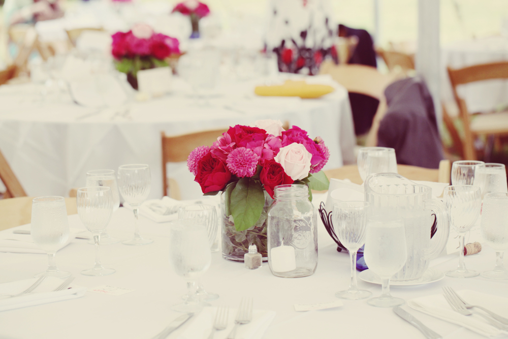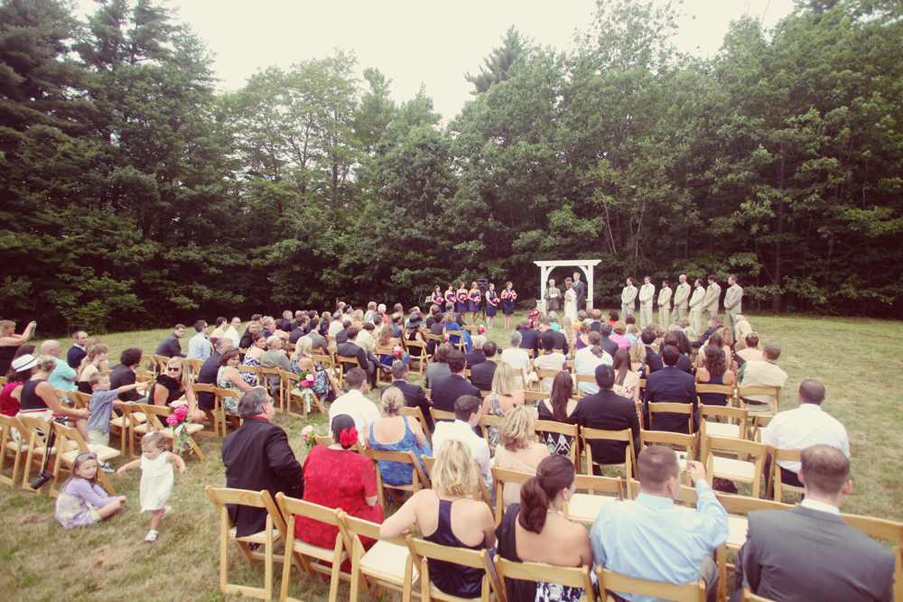 Sometimes the best wedding venues are the ones close to your heart likes today’s real wedding couple who tied the knot at a family members home in Peterborough, New Hampshire. I find the color of the bridesmaid dress to be just beautiful and perfect for the setting. I have to say I think these wedding flowers just got added to my top 10 favorites list! Be sure to check out the vintage style postcards that they use as table numbers. We have tons of vintage postcards at RWC and if you are interested send me an email and I will be happy to show you what we have. I love an upscale backyard wedding, they are so personal and often seem to reflect the couples. The rustic romance around this wedding is just outrageous… I love it!