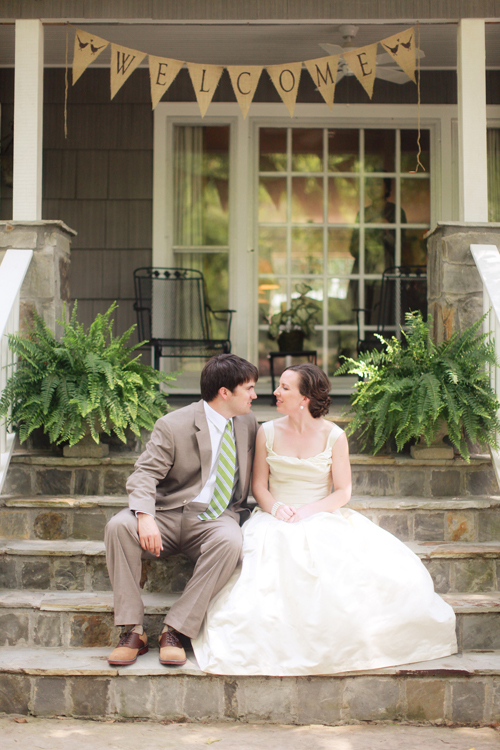 In part I of this southern backyard wedding we focused on the details like the burlap banners that made this wedding a real rustic stunner and now in part II we showcase some elements that really made this wedding unique. I love the way this couple chose to display their centerpieces – the slice of wood with the flowers on top is so rustic chic. If you want to GET THE LOOK of this couple’s centerpieces head over to the Rustic Wedding Chic Shop where we offer similar birch tree slices.