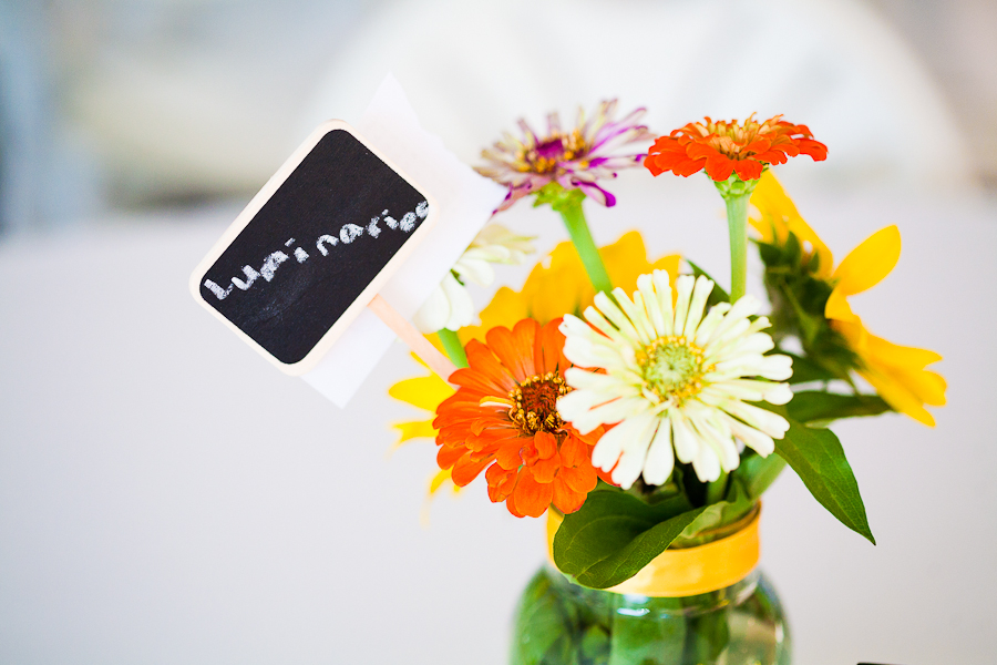 When you mix together sunflowers, a barn, a southern location with a sweet bride and groom you get today’s real rustic wedding. Taking place at The Barn at Valhalla in Chapel Hill, NC this wedding shows off the best of what the south has to offer. I love when I can share some of the inspiration behind the wedding, here is some info from the bride. Our reception paid homage to our history of travel as each table was named for a memorable place in our relationship history. Our sunflower centerpieces were inexpensively but uniquely enhanced with pictures of us at each of the locations, and mini chalkboards (a nod to teaching) labeled each site.