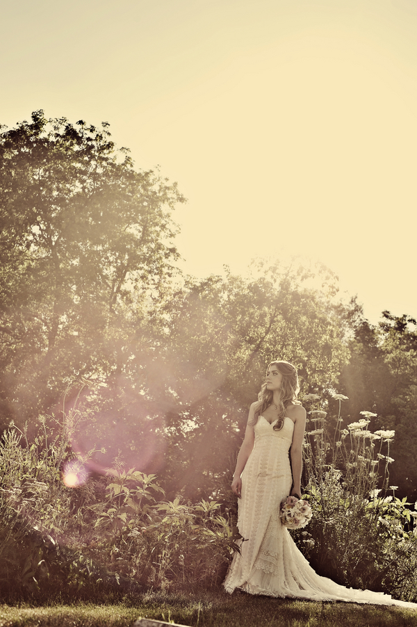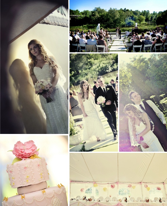 I love when brides find a way to mix different wedding style together to create a unique look. Today’s real which took place in Ontario, Canada combines a rustic style with a boho vintage one to create a beautiful look. One of the reasons why I love when brides combine styles is because every bride has a slightly different take on things so each wedding comes out with a truly personal and one of a kind look! The soft pink and cream colors in this wedding are so elegant and classic yet really help to embellish the vintage feel.