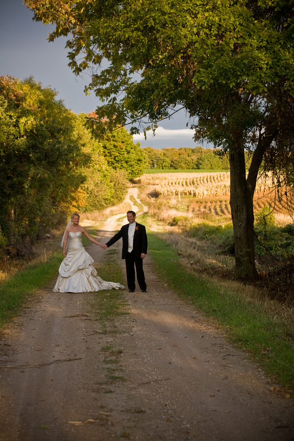 Fall weddings can be so beautiful thanks to dark rich colors like burnt orange and brown. Today’s real wedding features a couple that lives in Minnesota but returned to Michigan for their fall farm wedding. Held at the bride’s family farm this wedding combines the best of rustic elegance to make for one great looking wedding. Check out this couples guestbook, these thumbprint guestbooks are becoming a big trend lately.