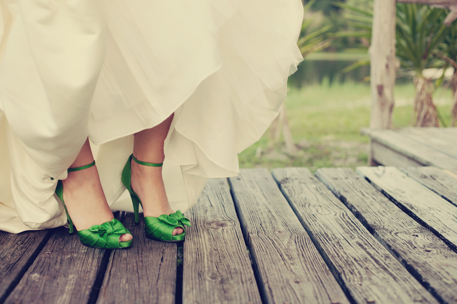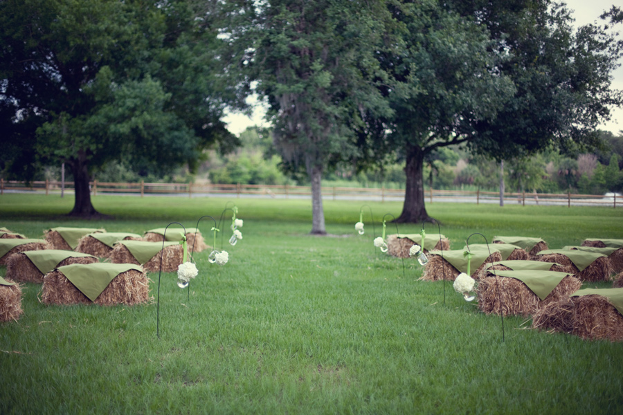 This real rustic wedding has rustic chic written all over it! From the location to the ceremony seating to the mason jar candle holders, this wedding will really wow you. Held at the Quail Creek Plantation in Okeechobee, FL this wedding seems to mix country fun with wedding elegance. One of my favorite parts about this entire wedding is the brides shoe choice- both of them! I love her green high heels for the ceremony and her cowboy boots for the reception.