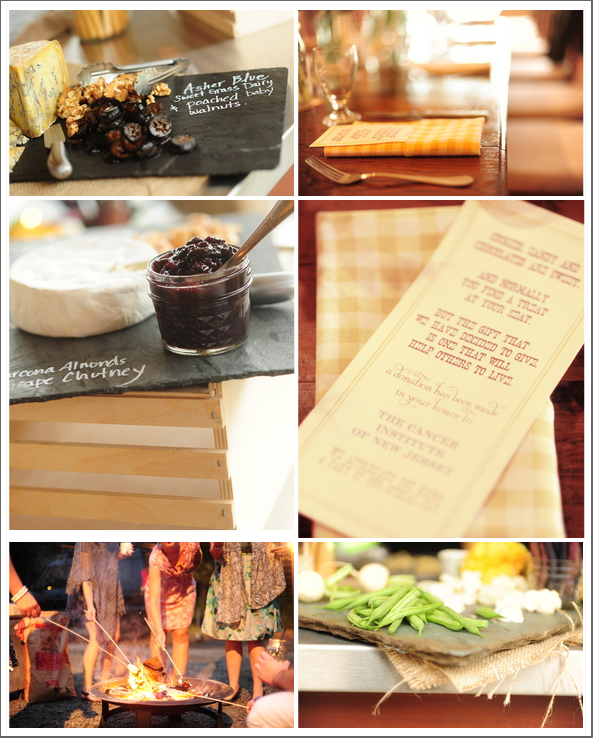 In part I of this farm style wedding we were loving the location, chalkboard dinner menu and the mason jar drinking glasses. Here in part II I think you are going to fall head over heals in love with the idea of roasting s’mores. If you are thinking about having a sweet treat for your guest at the end of the night consider s’mores – yes, a little gooey but a charming and yummy way to close the evening. This classic camp favorite will be fun for your guest young and old and adds a little old school rustic charm.