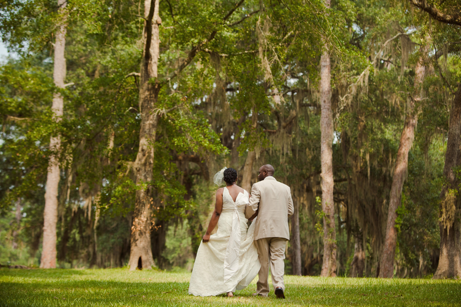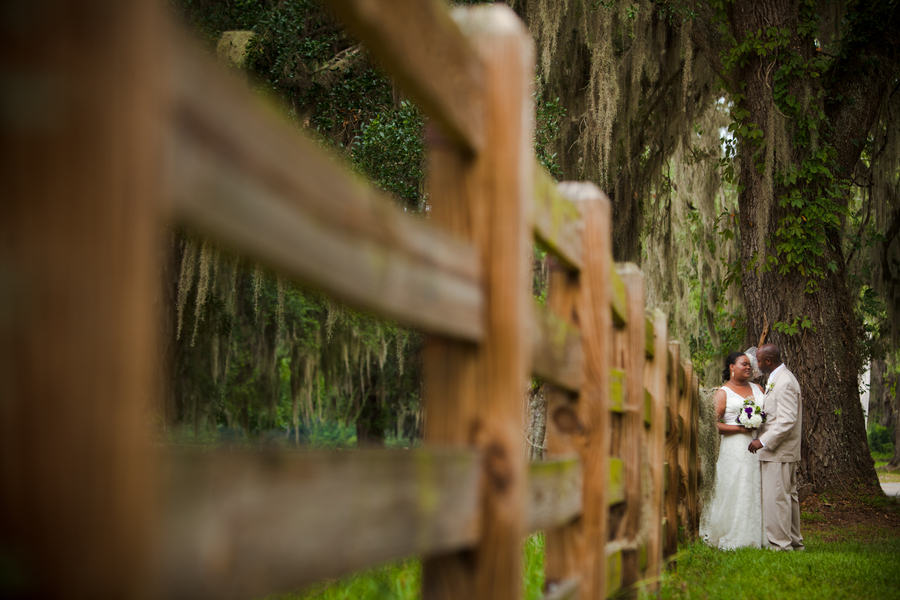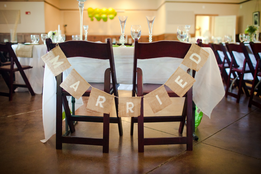 The pictures from today’s real rustic wedding will make you want to sip sweet tea while sitting in a rocking chair. This real rustic wedding has all of the making for a perfect southern rustic affair. Held at The Retreat at Bradley’s Pond in Tallahassee, Florida this wedding offers southern comfort mixed with classic rustic style. I love the “married” burlap banner that hangs over the back of the couples chair – this is such a cute detail and a fun DIY idea that you can pull off easily at your own wedding.