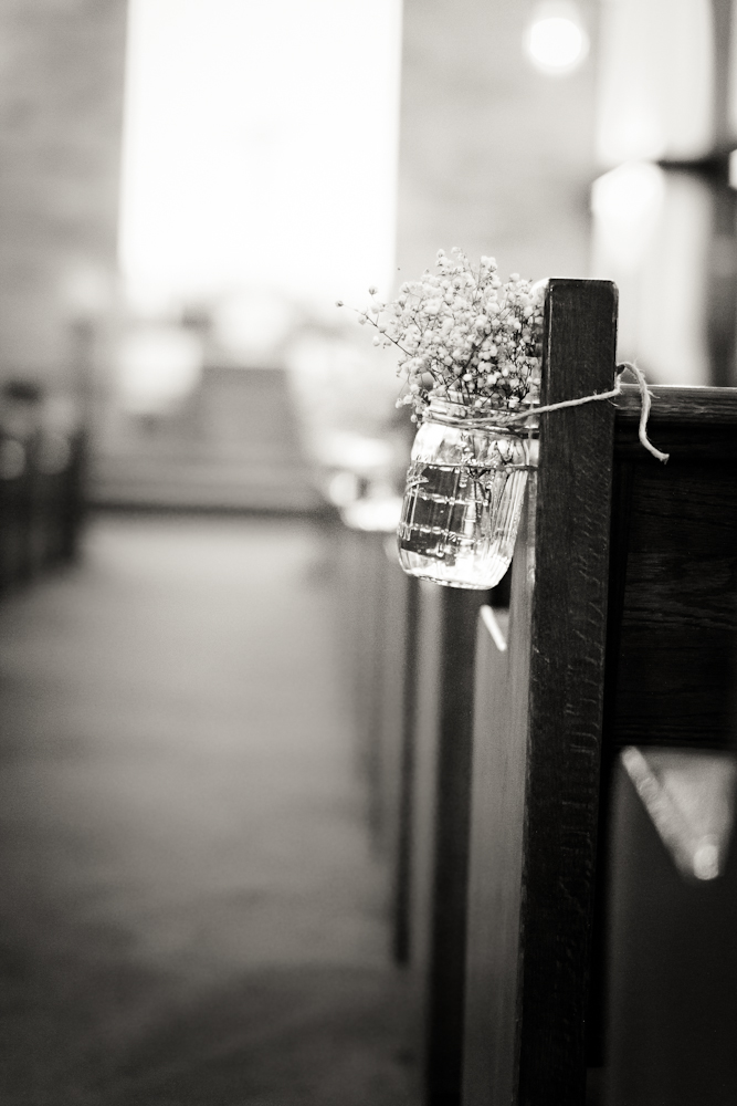 Here are some more great pictures from this gorgeous North Carolina real rustic wedding. I love the idea of hanging mason jars from church pews, for more ideas with mason jars visit our top 5 ways to use mason jars article. Be sure to check out Part I of this wedding so that you see all of the yummy pics to use as inspiration!