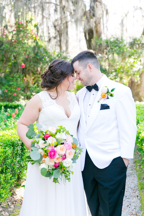 Taking place at the South Carolina rustic wedding venue, Magnolia Plantation & Gardens this lovely wedding is the epitome of a southern chic wedding! From the photographer: On this warm spring-like day, Liz + Thomas shared a sweet First Look in Flowerdale Garden before we set off together in search of beautiful light and colorful blooms… and we sure found it! We honestly couldn’t have asked for anything better.Liz + Thomas said “I do!” overlooking the Ashley River and for once, the lighting in this area was perfect! Thanks to Dana Cubbage Weddings for sharing this lovely southern wedding!