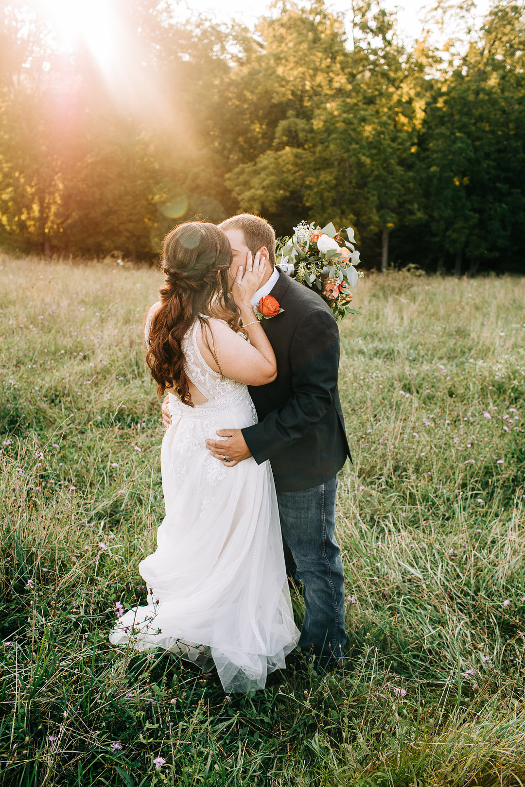 Taking place at a barn in Floyd, Virginia, Cam and Kelsey’s wedding was full of rustic charm. From the open air venue and homespun details to the barn reception, this romantic wedding is a rustic bride’s dream. From the photographer: Both Cam and Kelsey were raised on farms and have deep roots in agriculture, so a 1946 dairy barn that has been repurposed as a wedding venue was so meaningful and the perfect choice for the couple. All of their florals were DIY’d, along with dahlias grown by Cam’s grandfather. For their ceremony, the pair planted an apple tree, adding soil from both of their family’s farms to represent the strong foundation and roots beginning their lives as husband and wife. Keep reading to see all the details from their special day!