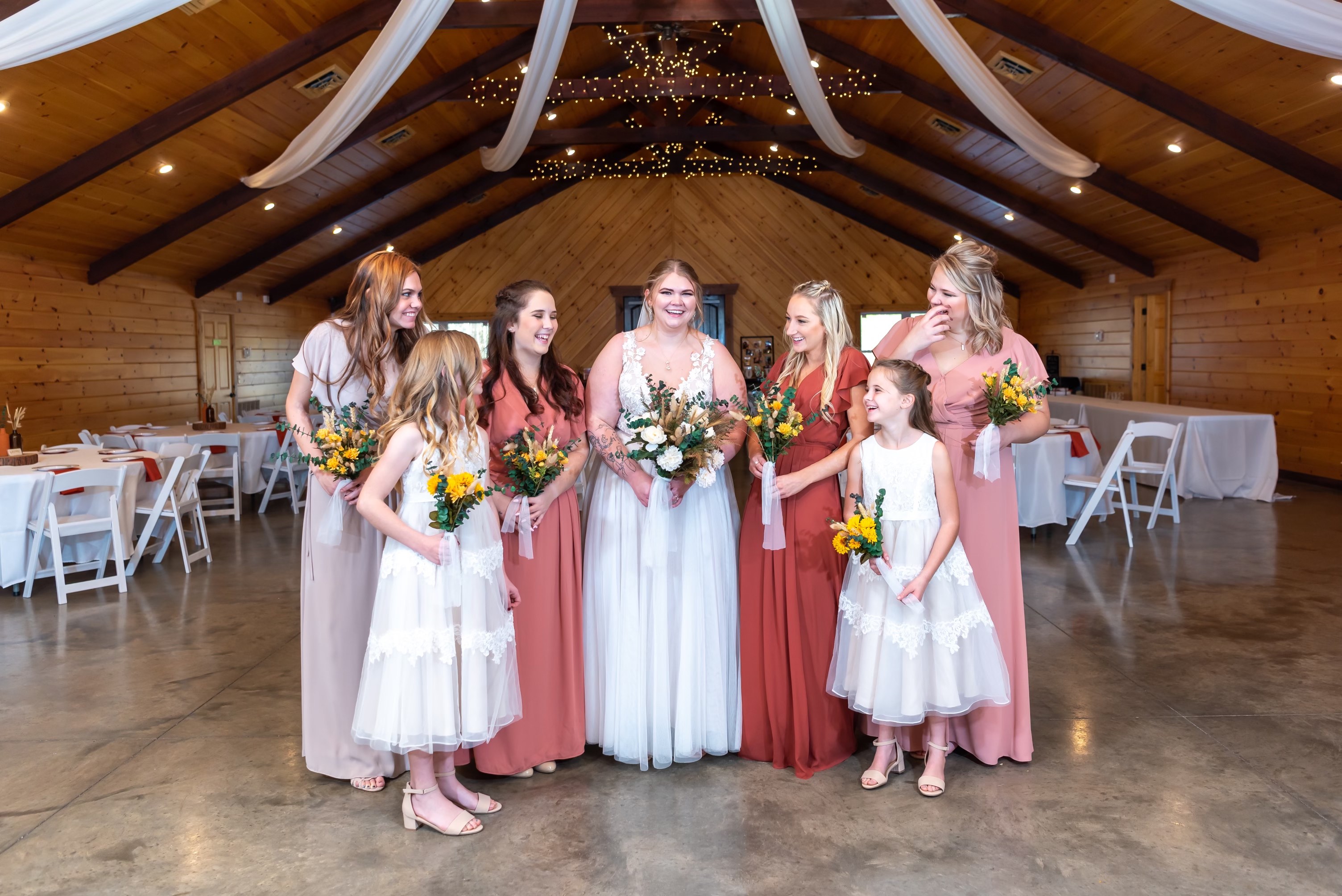 Sources – Photographer:Tod Eltzroth / Venue: The Venue on Lake Grant / Mother of the bride Dress: David’s Bridal / Flower Girl Dresses: David’s Bridal / Bridesmaid Dresses: David’s Bridal