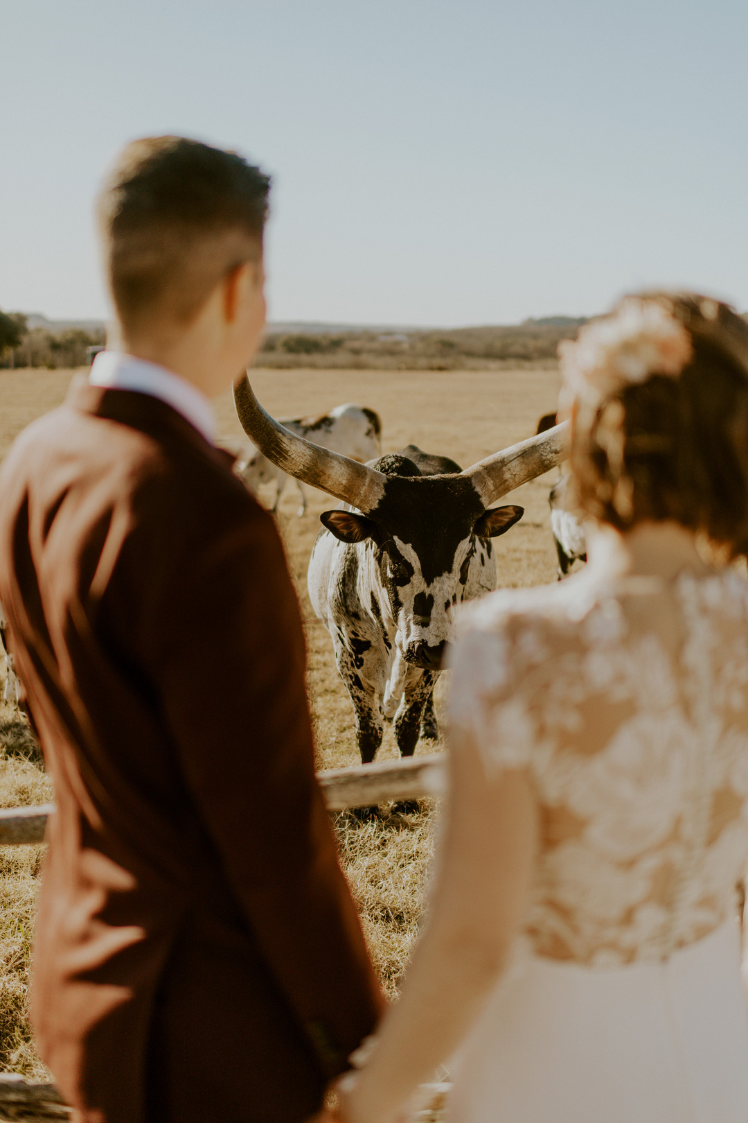 Taking place at the Contigo Ranch in the Texas Hill Country, this amazing outdoor wedding perfectly combines a backyard feel while adding chic details that are just so lovely! From the photographer: Sarah & Keeley’s Rustic-Chic Wedding in the quaint Texas town of Fredericksburg was filled with intentional details, an incredible vendor team, and thoughtful touches that made the day what it was. From yard games to signature cocktails, gorgeous candles to campfire s’mores, their wedding balanced the family-feel of a backyard wedding with chic details through their floral design, wedding attire, and table decor. Thank you for sharing this rustic farm wedding with us, Anna Claire Beasley Photography. Keep scrolling to see more of this rustic farm wedding in the Texas Hill Country!