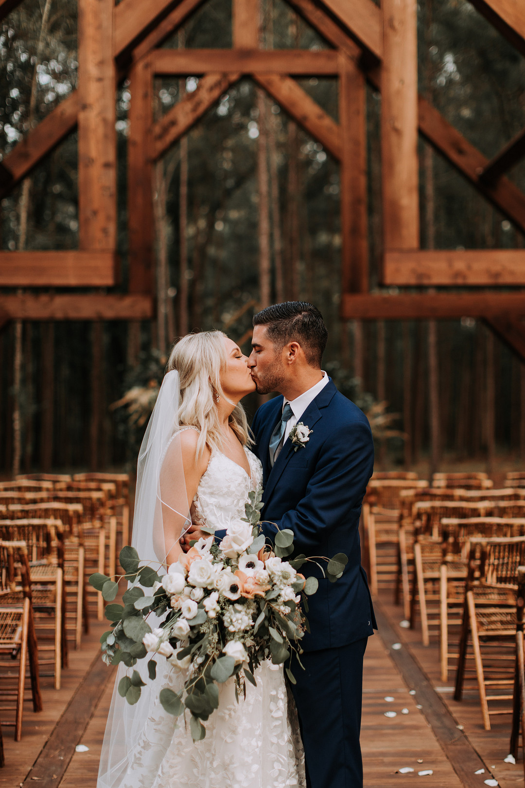 Taking place at a rustic barn venue, this bride and groom planned a picture perfect outdoor fall wedding. If you and your partner are planning a cool weather wedding, enjoy the great outdoors, and have a love for classic & romantic details, Kylie & Tyler’s autumn nuptials might be the perfect inspiration for you. Keep reading to see more of this rustic outdoor fall wedding!