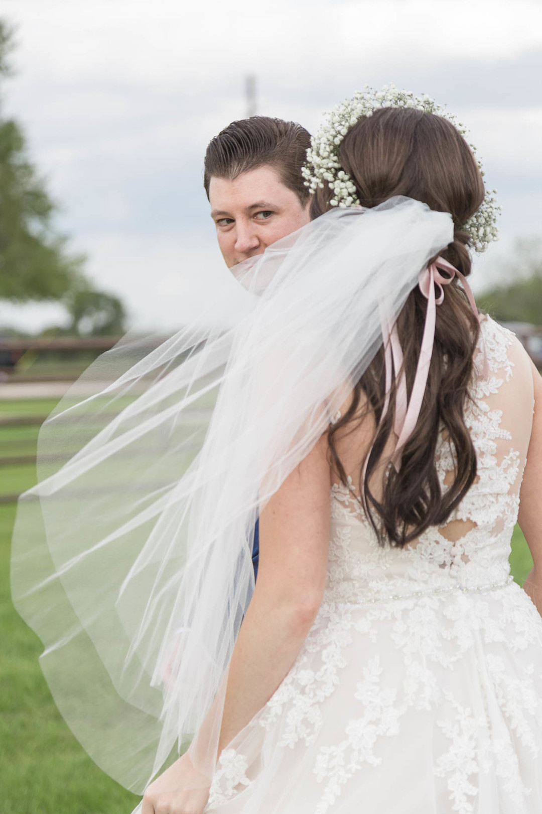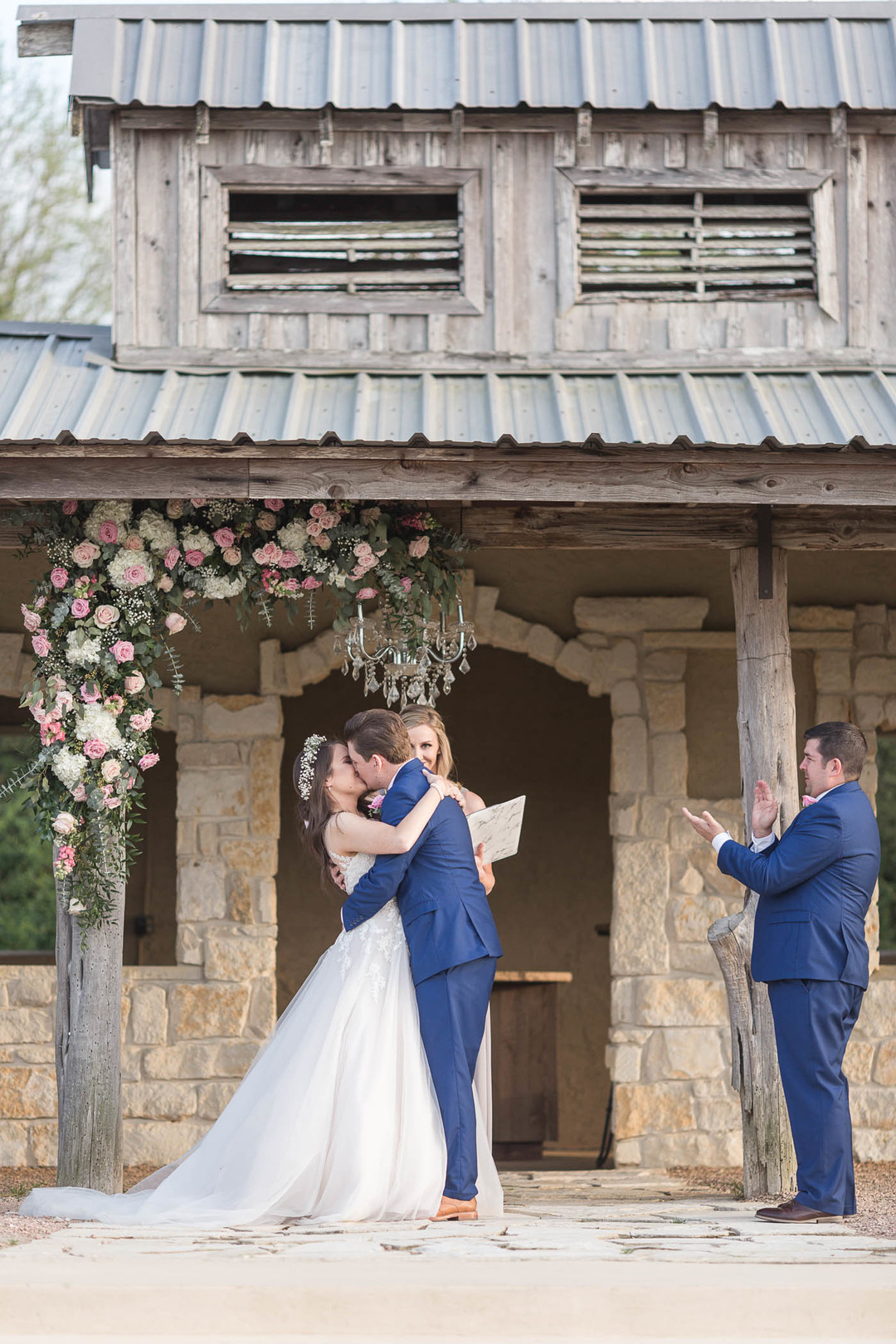 Taking place at the Texas rustic wedding venue, Moffitt Oaks, this beautiful barn wedding is like something out of a dream! Your wedding day is easily one of the happiest days of your life! You are surrounded by those who you love most in the world. There is dinner, dancing and drinks. Everything looks the way you planned and you are wearing an outfit you have dreamed of. It will be a day you will never forget. This was no exception for Ali and Cameron. There were so many smiles and giggles throughout the day that our cheeks hurt from smiling along with them. This was such a beautiful day filled with the prettiest sunset and we know we will never forget it. Thanks to C. Baron Photography for sharing this lovely wedding with us.