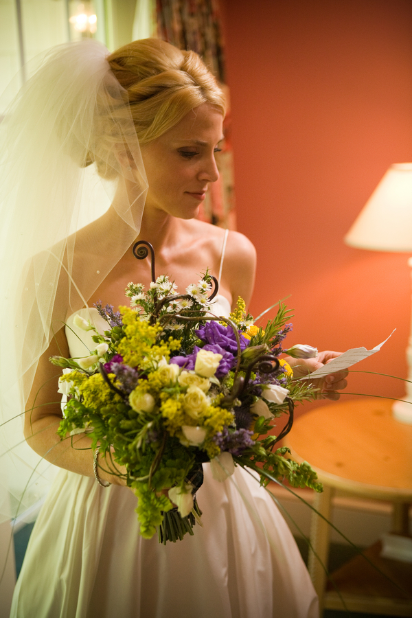 Picture a small island where the only way to get around is by foot, horse and buggy or bicycle, then throw in one stunning looking bride and a wedding filled with DIY touches and you have today’s real wedding. I am so excited to share this real wedding for several reasons; one, I have only seen a handful of dresses that have stopped me in my tracks and when I spotted this one I was captivated. You wouldn’t believe me but I actually called my husband into the room to show him how amazing I thought this dress was. I was completely taken with the overall construction of the dress and how stunning the backless feature was… as you can guess he was respectful about my enthusiasm but not as understanding as you will be when you see it. The bride told me the dress was based on two different Amsale designs that she loved equally and after a few, of what I can only imagine as long months of trying to decide which one to choose, this smart bride had someone create her dream dress by literally sewing her favorite features from each design together into one.