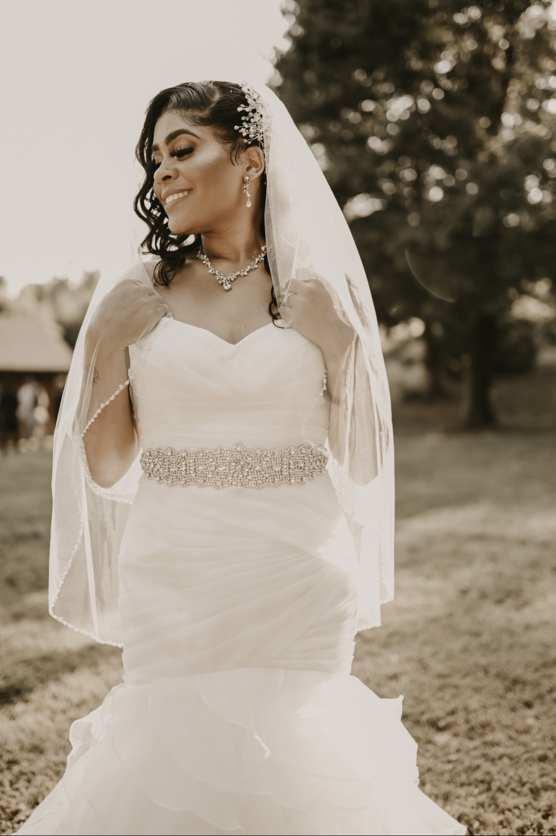 “My favorite detail was my veil. It was purchased from David’s Bridal and was outlined with diamonds. It was different and unique! ” – Tori