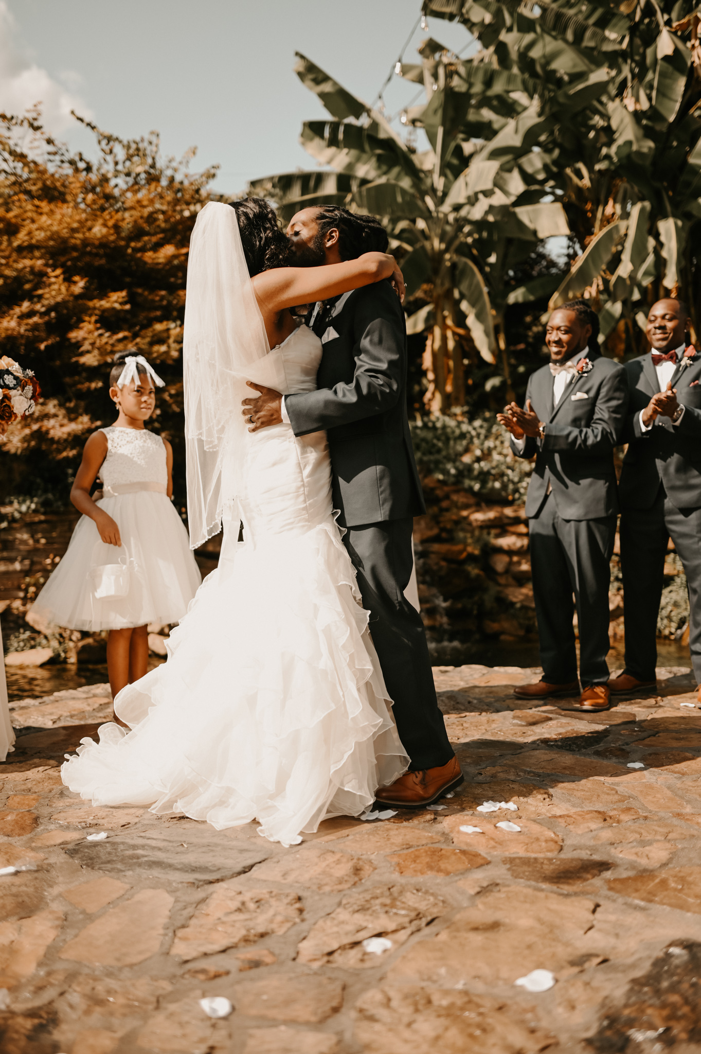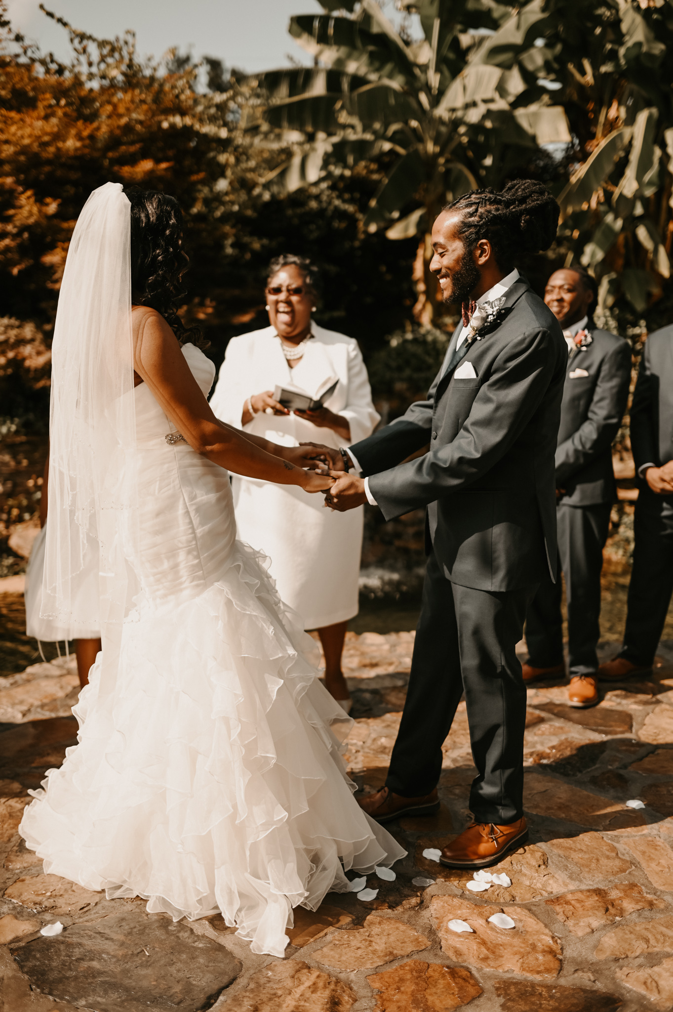 “A funny/unexpected moment I will never forget is when our officiant pronounced us husband and wife, and to kiss the bride, my 8-year-old daughter asked her, “so does this mean my mommy will have a boyfriend forever?” Our officiant replied, “Yes baby, she has a husband forever!” We couldn’t help but laugh and cry tears of joy!” – Tori