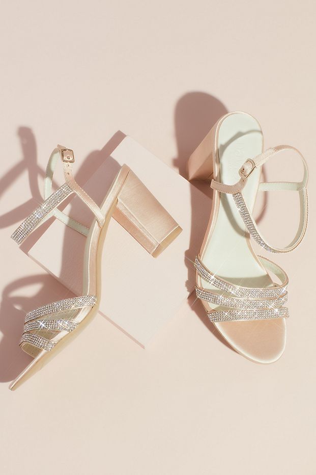 3. Satin Block Heel Sandals with Pave Crystal Straps – $69.95